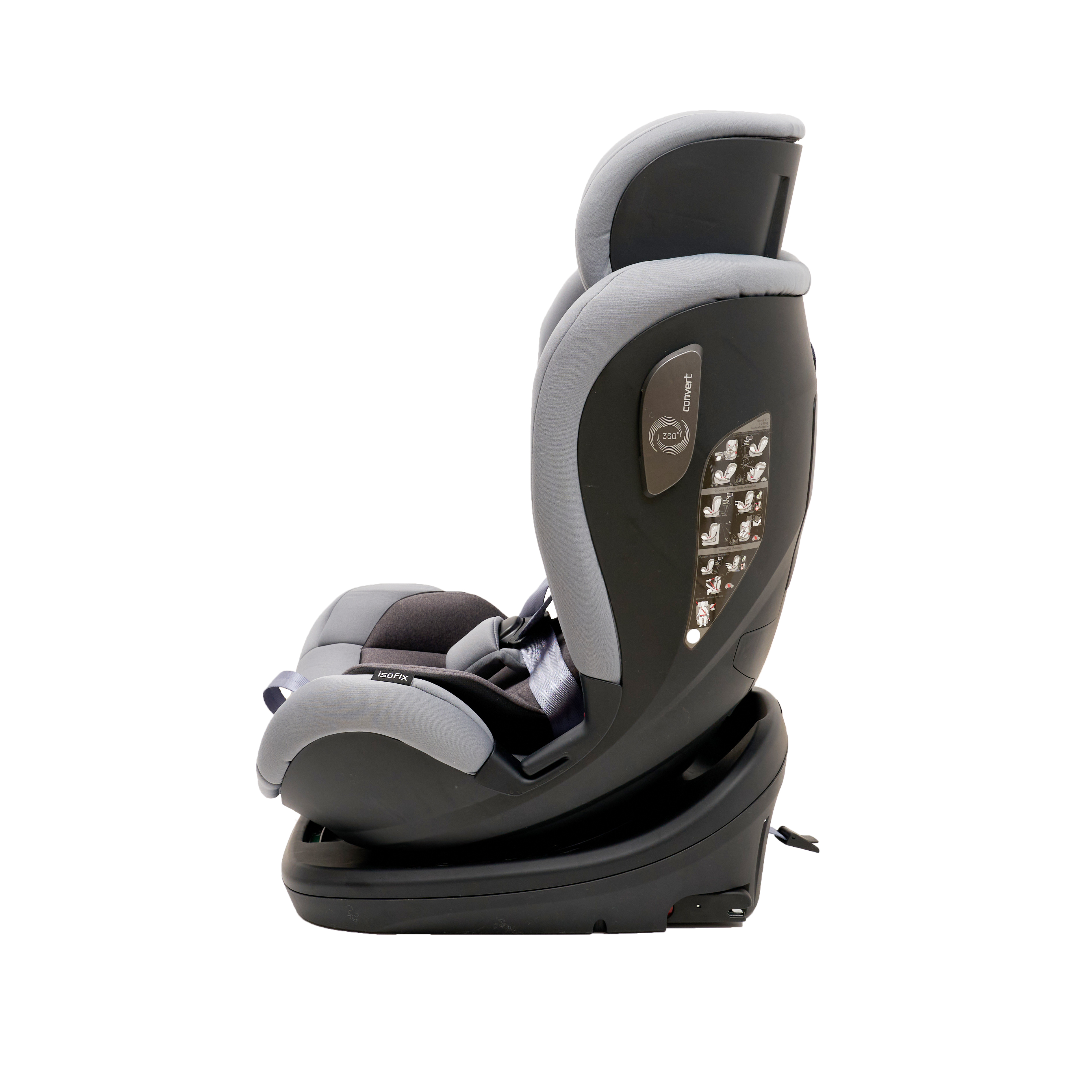 EasyGo Convert Car Seat (for children from 0 to 36 kg, group 0, I, II, III) with 360° rotation and IsoFix attachment. This car seat is A comfortable and safe solution for your child from birth up to 36kg Convert is one of the most versatile car seats on the market Built-in IsoFix base minimizes the possibility of mistake when installing the seat in the car and the ability to carry a child up to 18kg backwards is in line with the latest test results safety requirements, which clearly show that this position is optimal.When transporting a child in a position against the direction of travel, the effect of the child's head jerking forward in a frontal collision, or even emergency braking is extremely dangerous.Be aware that the neck muscles of a child are not as developed as in an adult.