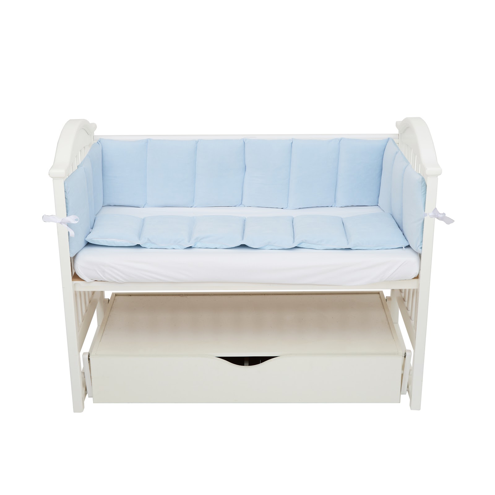This bumper is designed for all four sides of a 120×60 cm baby crib, fully surrounding the crib and creating a safe sleeping space for your little one.
