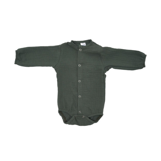 The muslin bodysuit is a comfortable and practical garment for kids. It is made of muslin fabric, which is characterized by its lightness and breathability.