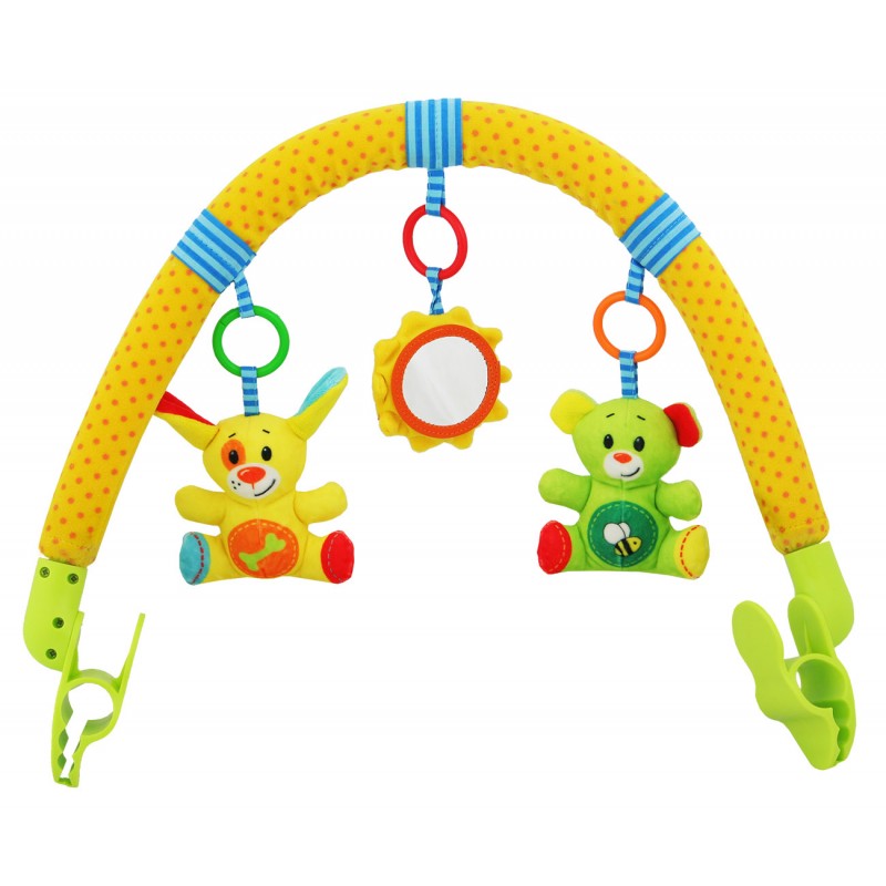 Soft and pleasant to the touch, the stroller bar with toys will definitely please your baby! Bright colors attract the attention of the child, he learns to better concentrate, develops visual perception. At the edges of the arc there are special clothespins, with the help of which the arc is perfectly attached to any stroller. With such a toy, the baby will definitely not be bored during a walk. Animal toys made of high quality textiles are removable and can be used separately.