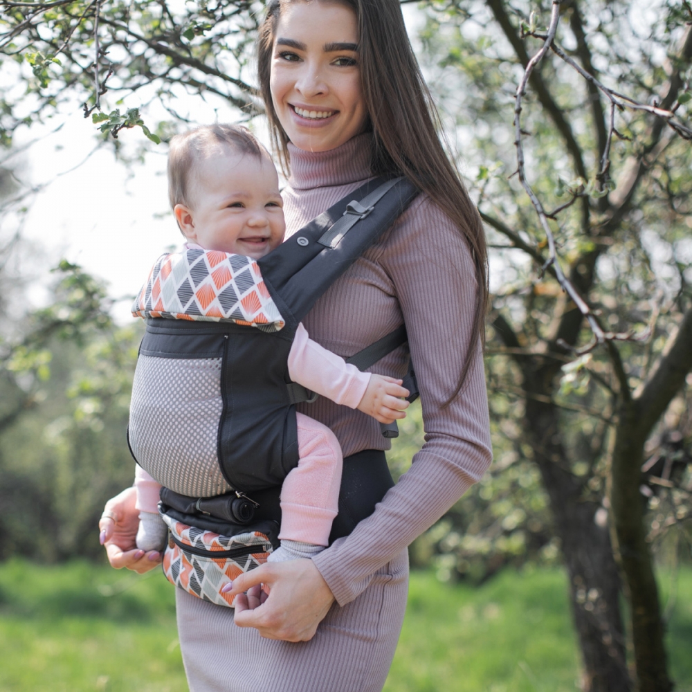 Ergo backpack is a real find for young parents, because it frees their hands during walks, and the baby is always there at this time. The backpack provides the physiological position of the child - M-position and supports the child's spine along the entire length. Suitable for adults of any size. Wide belt for better weight distribution of the child and 2 options for placing shoulder straps on the back of an adult: crosswise and parallel. There is a capacious bag with a zipper, a hood.