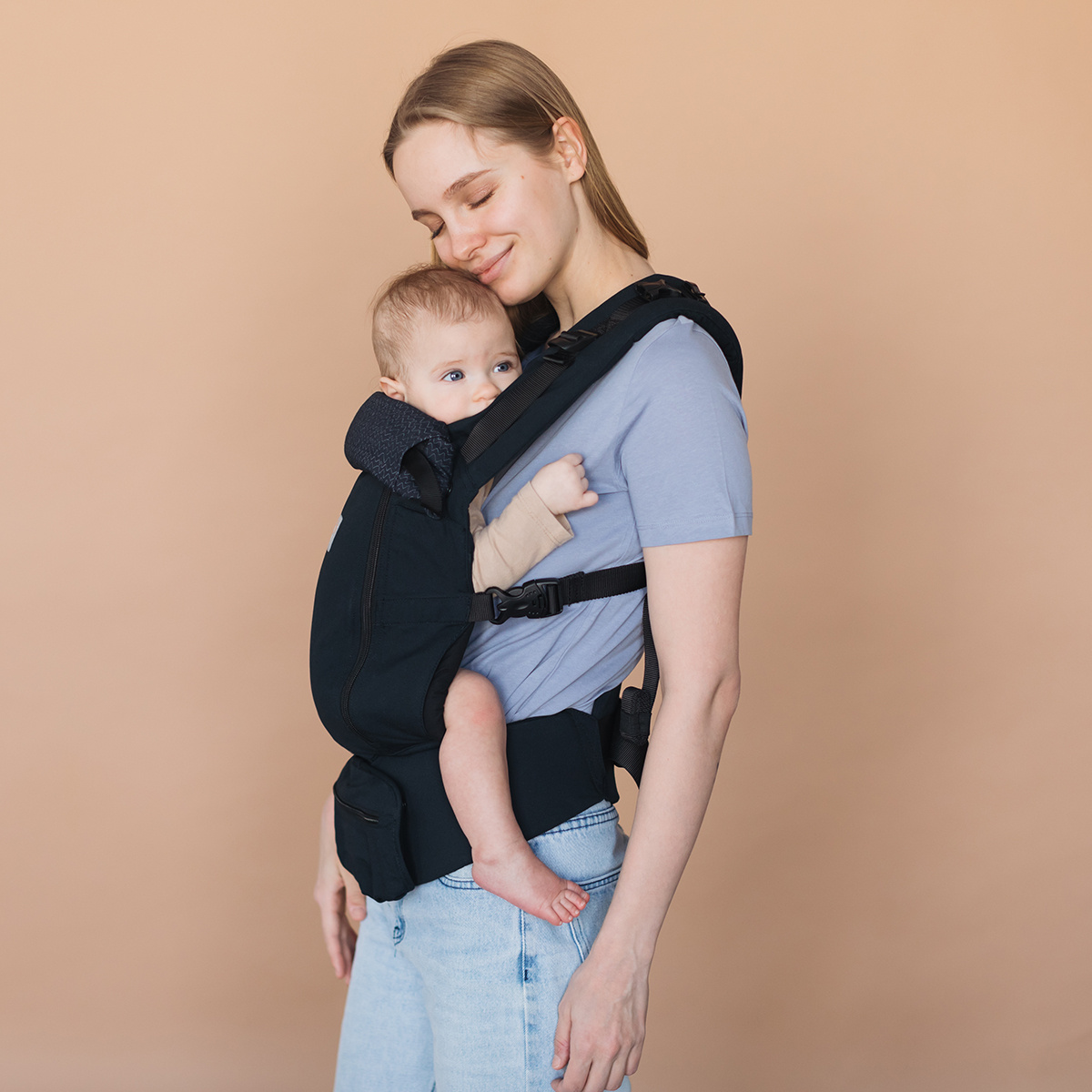 The child will feel comfortable, the backpack provides the physiological position of the child - M-position , also supports the child's spine along its entire length. A headrest and a hood are sewn into the back, so that when the baby falls asleep, both he and his parents are comfortable. Headrest with two positions and an adjustable connecting strap that is removable.