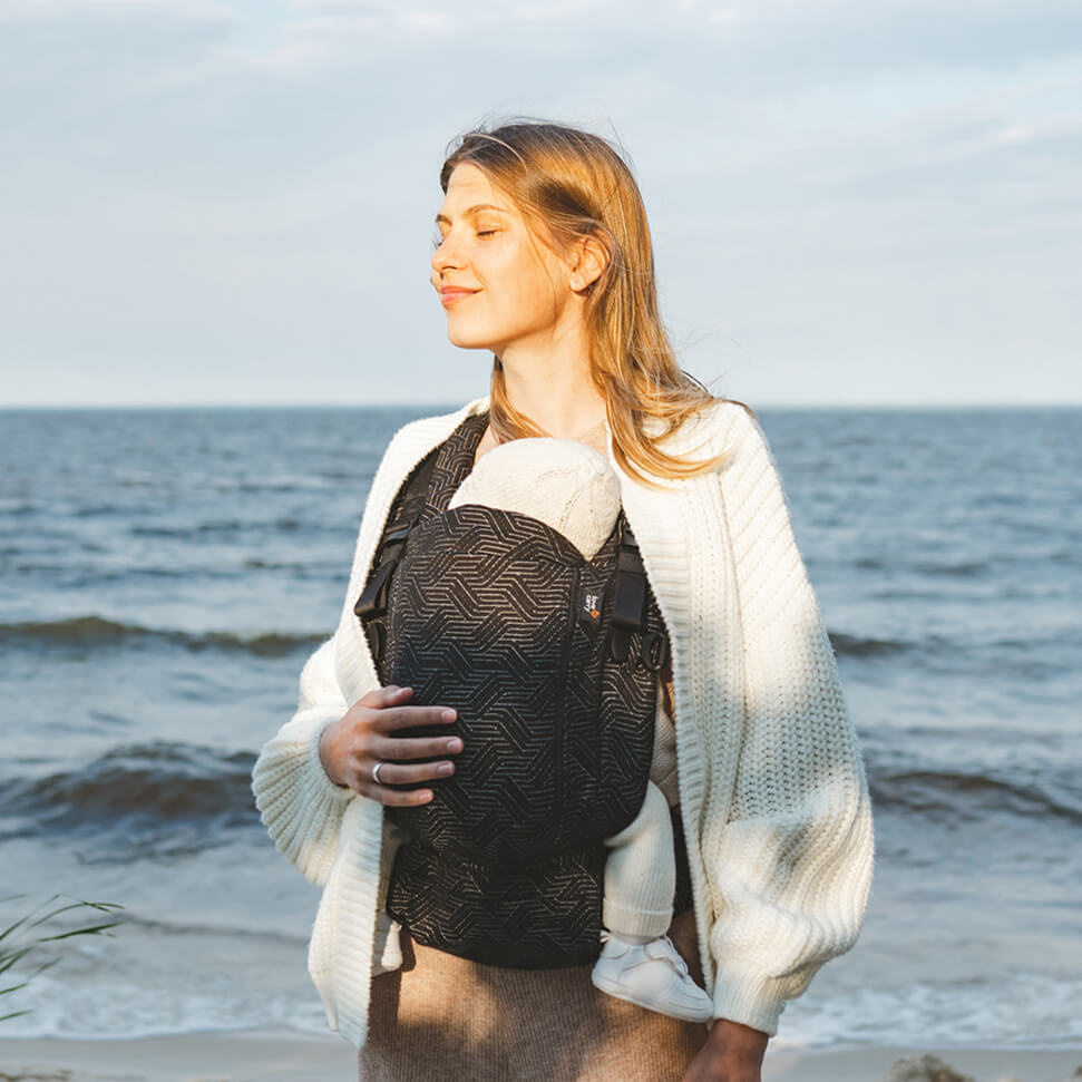 The backpack supports a healthy physiological M-position, promotes proper development of the hip joints, and supports the baby's spine along its entire length.