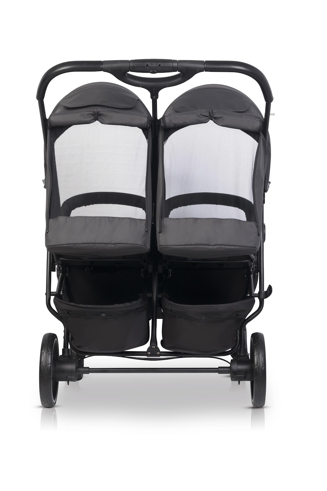 Despite having two seats, the stroller is only 74 cm wide, so it fits easily through standard doorways and elevators.