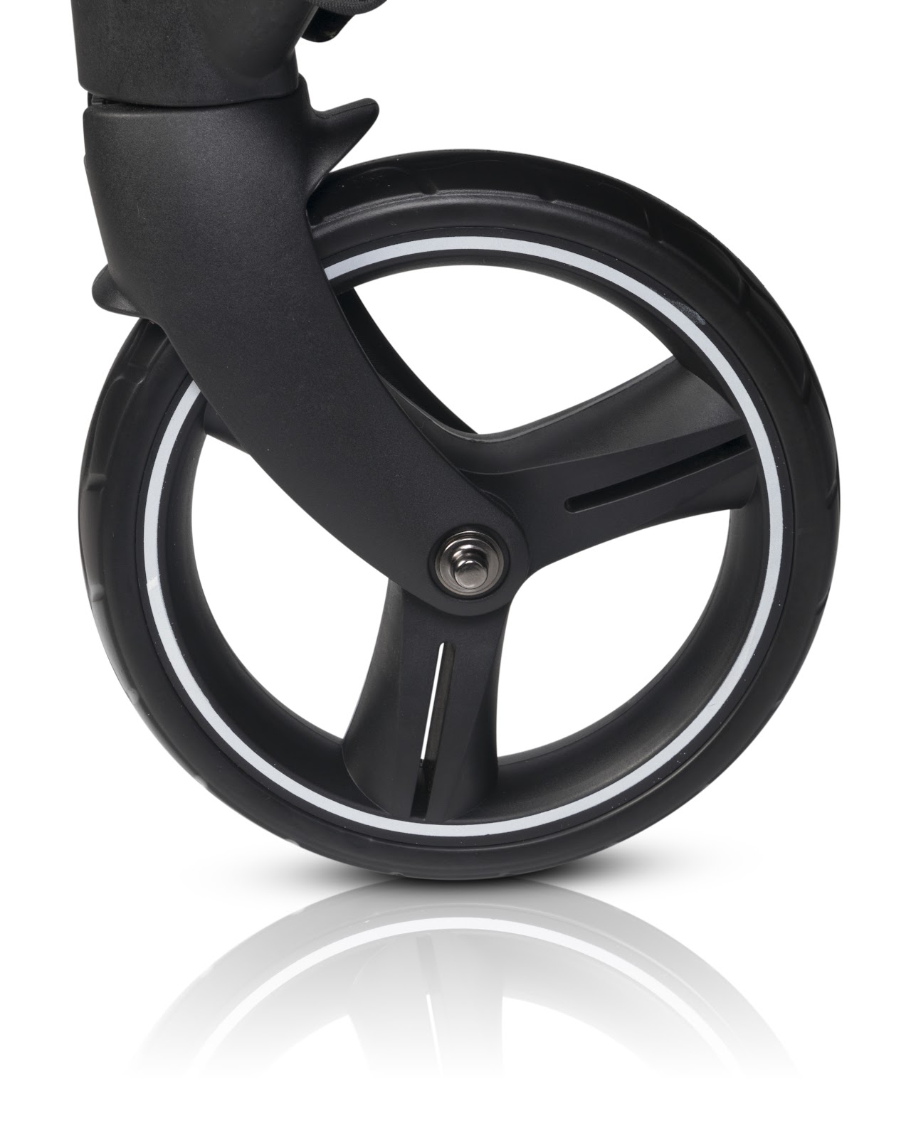 The front wheels are self-adjusting with the option of locking them for straight movement. Despite its size, the stroller is very maneuverable and easy to control — many parents note that it is easier to control than some single strollers.