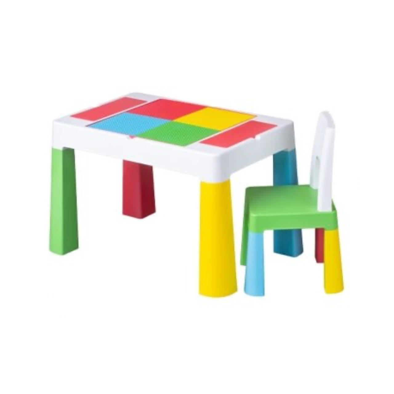 The Tega Multifun table and chair is a versatile and colorful set of children's furniture that combines comfort, safety, and fun.