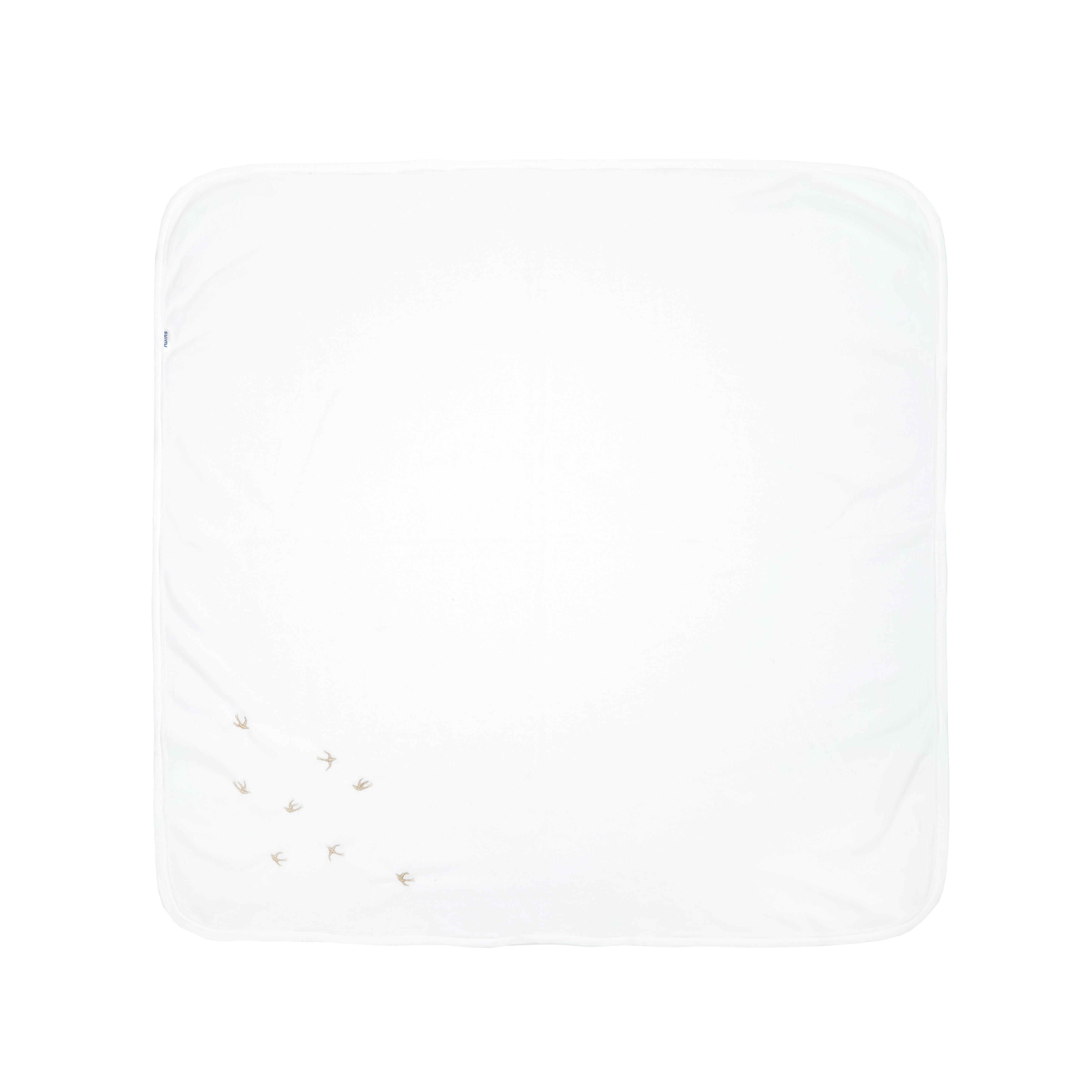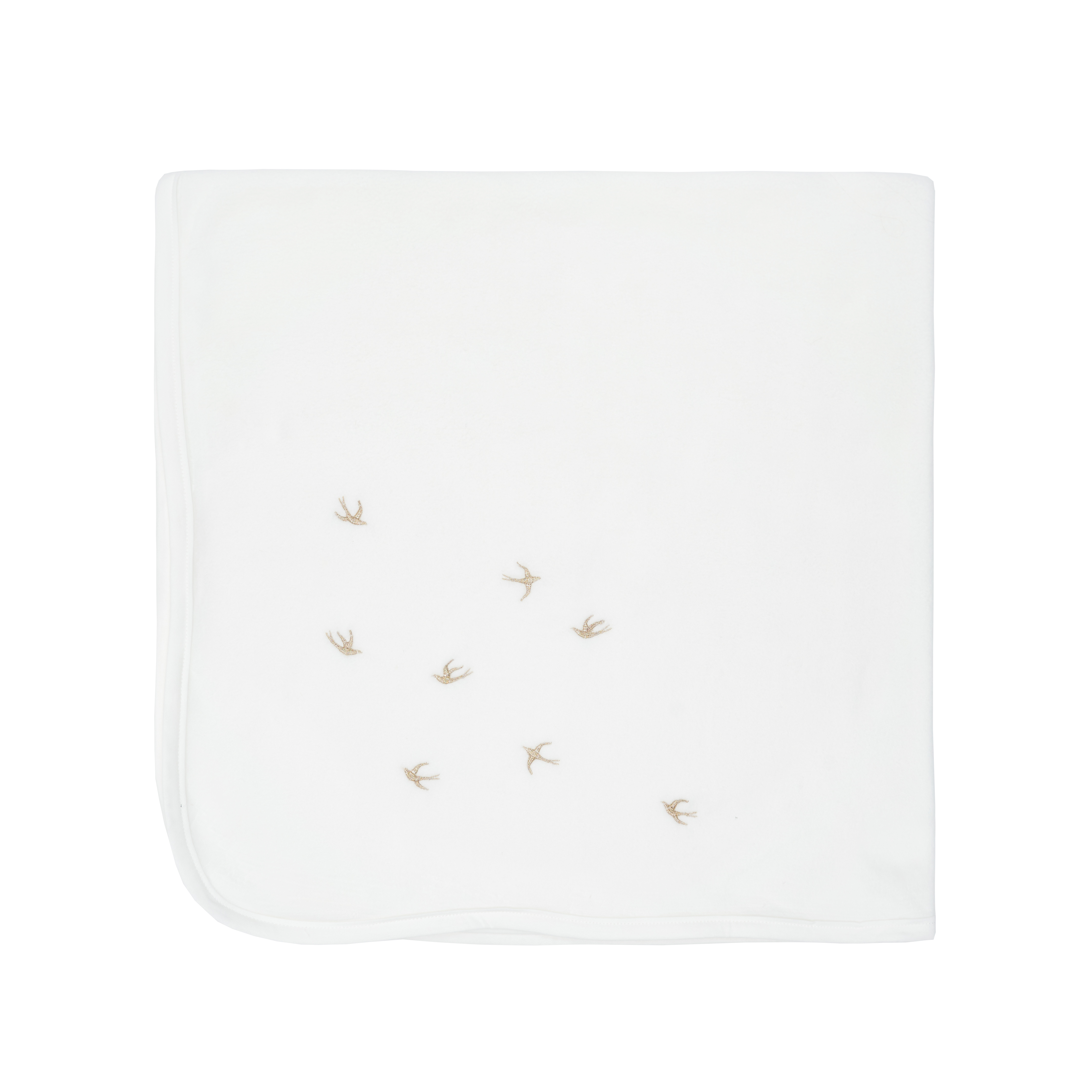 Baptismal - plaid Twins 100x100 fleece embroidery with swallows was created especially for the baptism of your child, combining the tenderness of the material with a symbolic design.