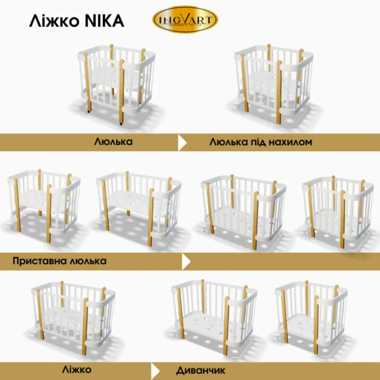 The Ingvart Nika 5-in-1 crib combines classic design and wide functionality for the convenience of parents and the comfort of the baby.