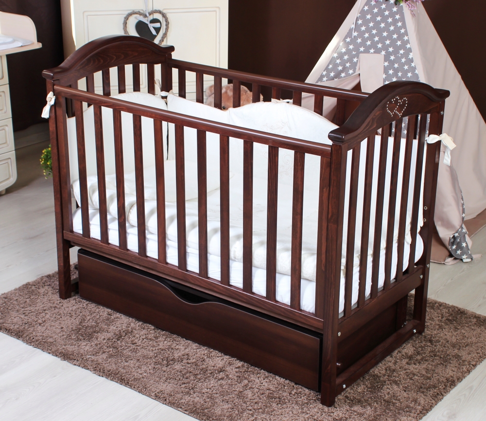Children's bed Twins iLove is made of natural wood and decorated with rhinestones, comfortable and safe for your baby, has an original design and several color options. The certified varnishes, paints and glues used to cover the crib are water-based, completely natural and non-toxic. The product complies with international requirements and state standards of Ukraine (Certificate of Derzhstandart ISO 9001).