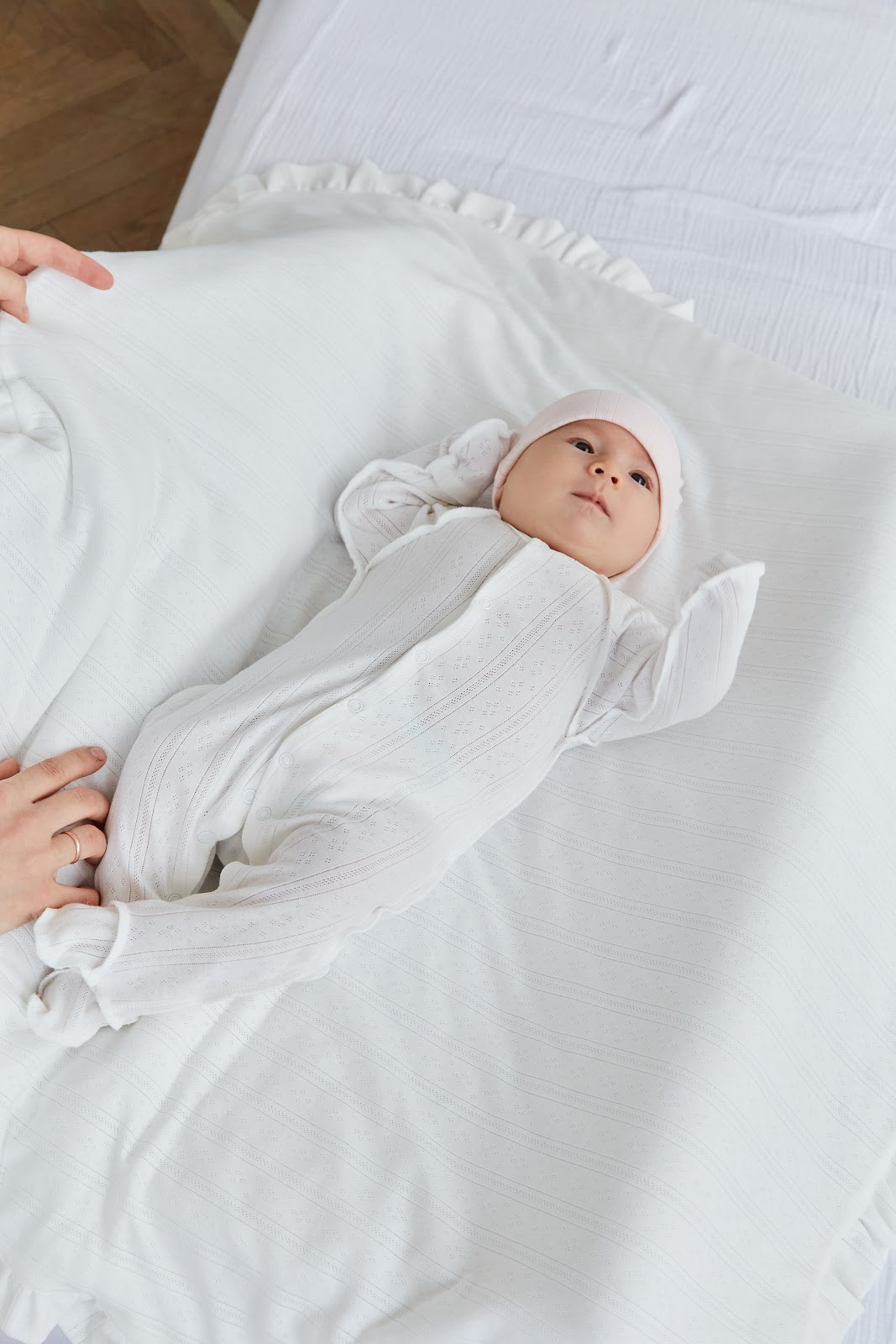 The little jumpsuit with closed arms and legs is ideal for newborns: it gives a feeling of coziness and protects from the cold.