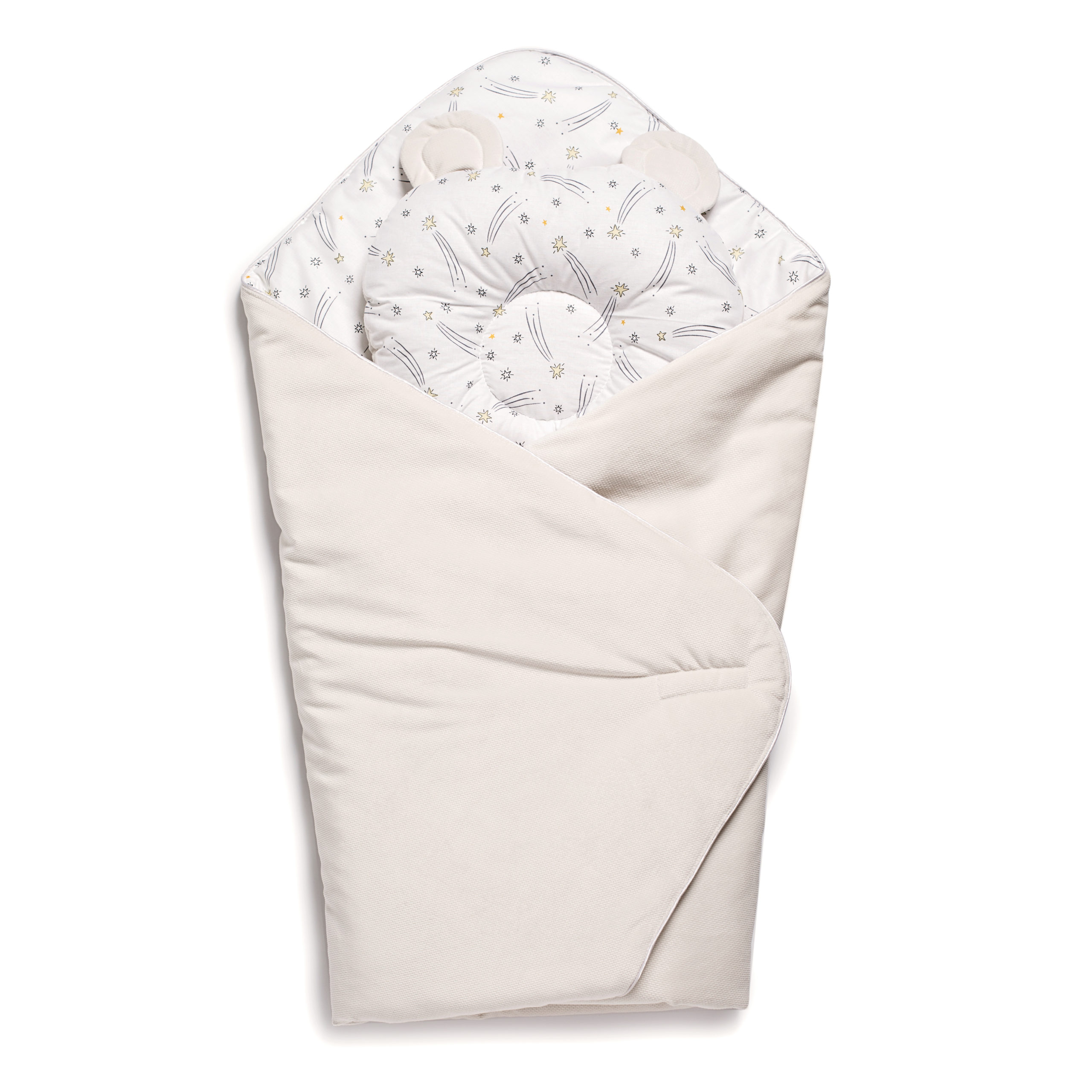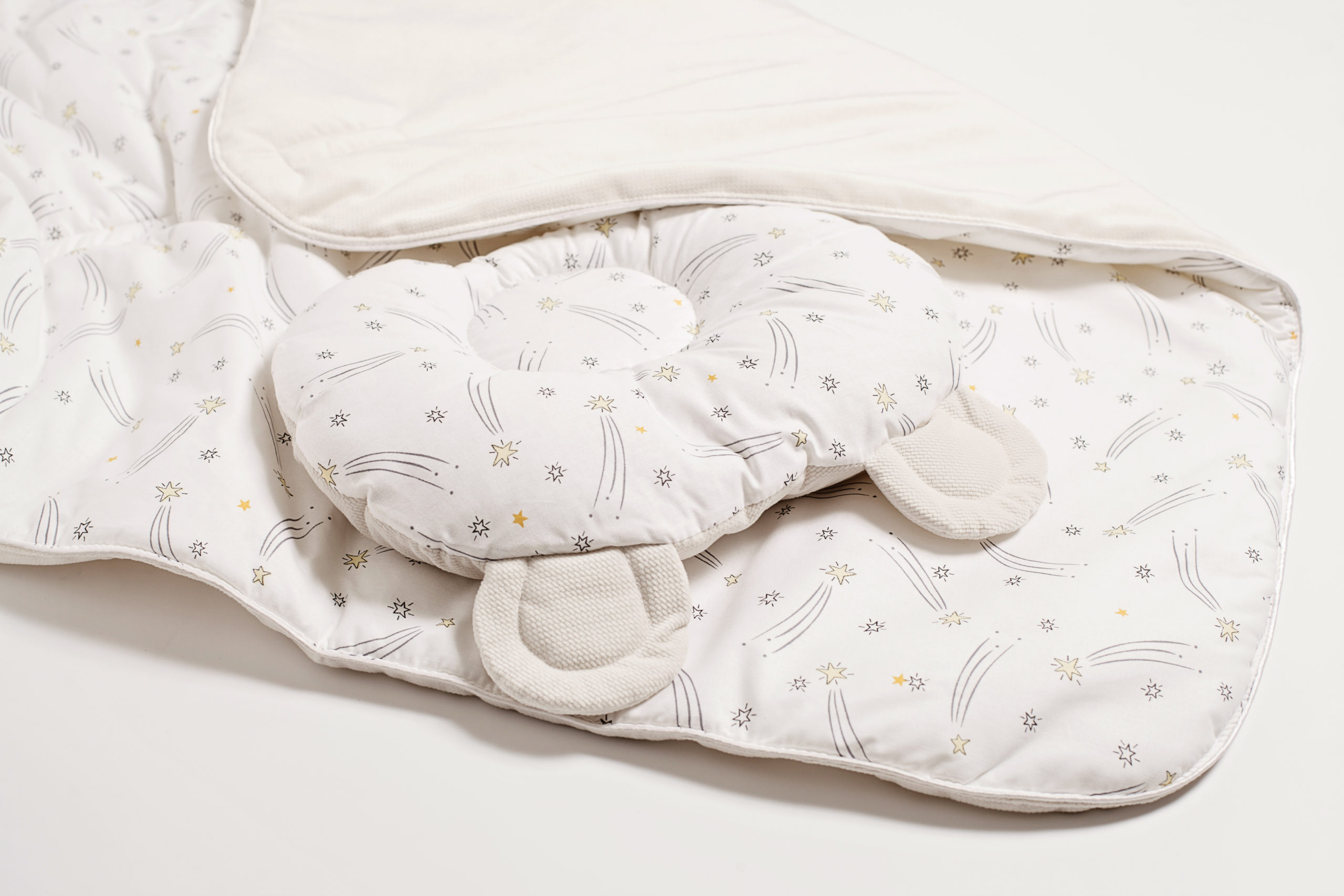 The set is universal in use, as it consists of 2 items: an orthopedic pillow and a blanket with a tie, which transforms it into an envelope. Buying a set of Twins Bear, you get a beautiful envelope for discharge, and then use it for a long time as a blanket and pillow in the stroller or in the crib. The envelope is double-sided, made of soft velor and additionally insulated.
