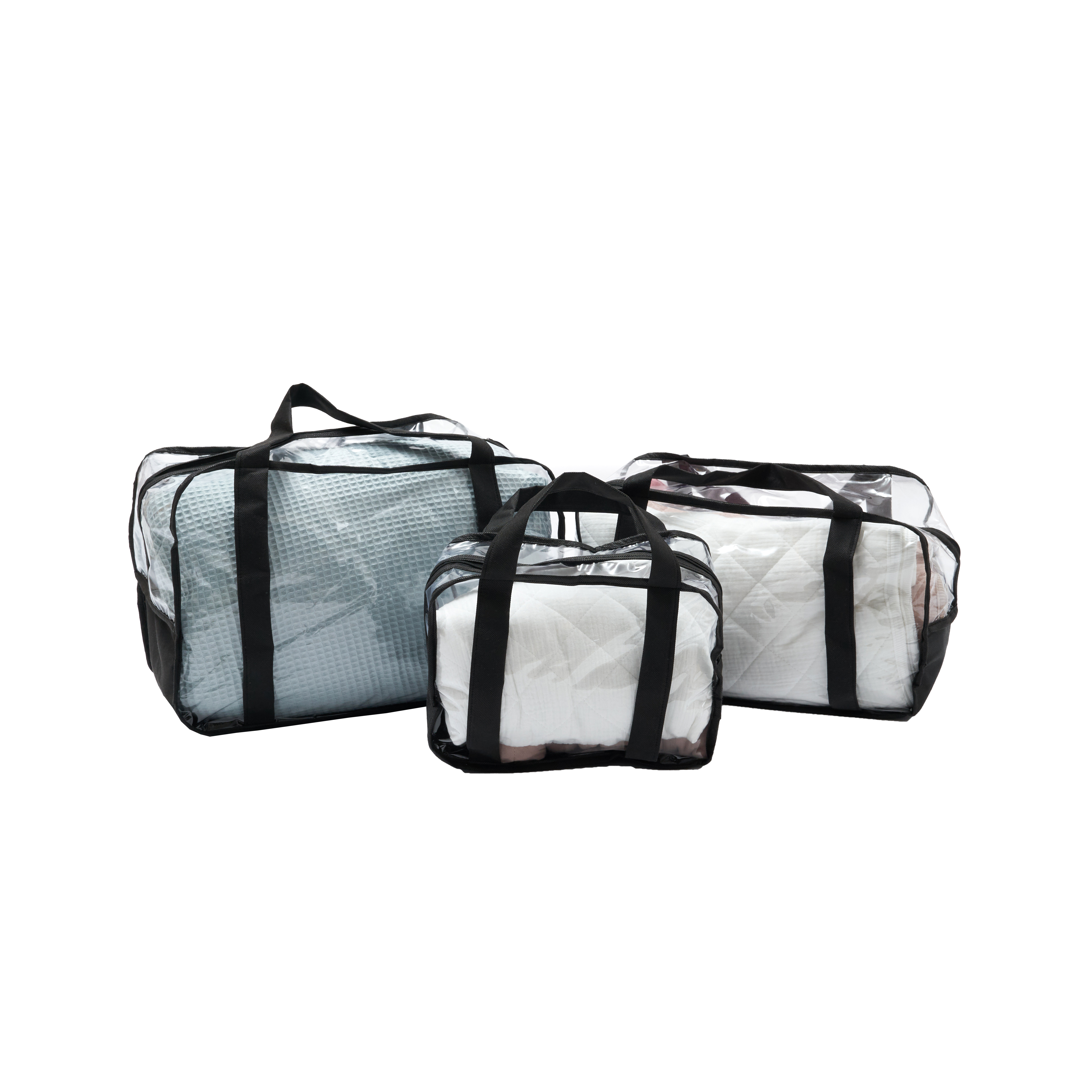 The set includes three transparent bags of different sizes to help you organize clothes for mom, items for the newborn, and hygiene products.