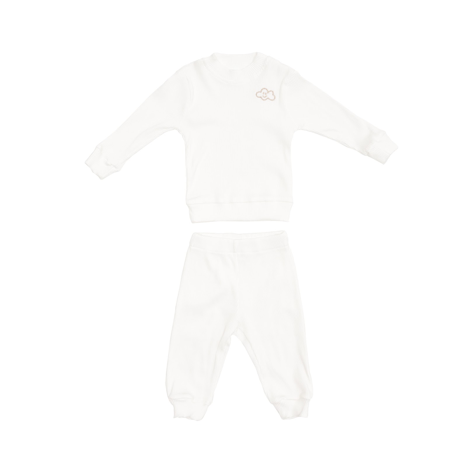 The pajamas consist of a long sleeve and pants, decorated with embroidery in the form of a cloud on the chest.