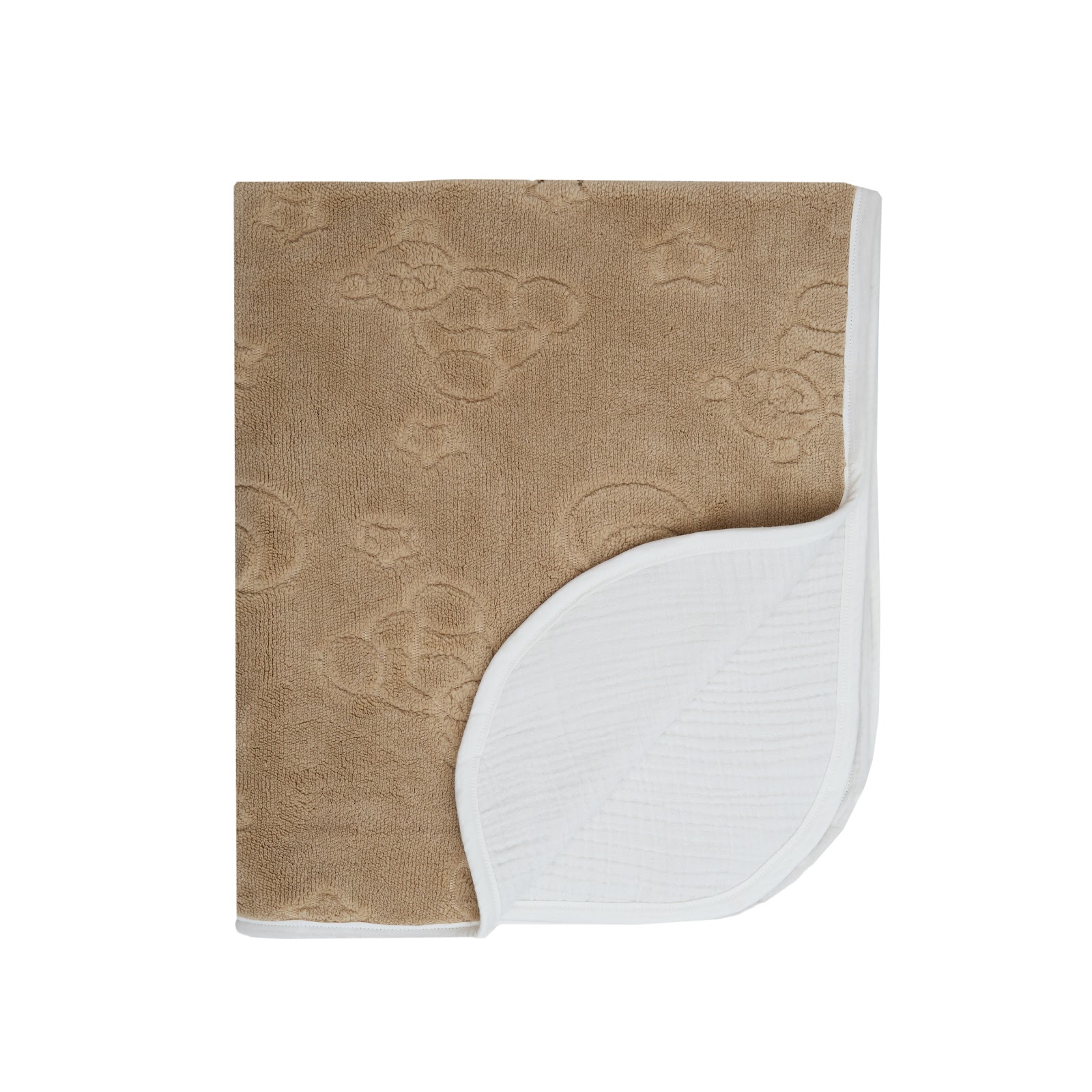 The top side of the blanket is made of soft velour with cute bears, and the inside is made of natural muslin, which is highly breathable and pleasant to the touch.