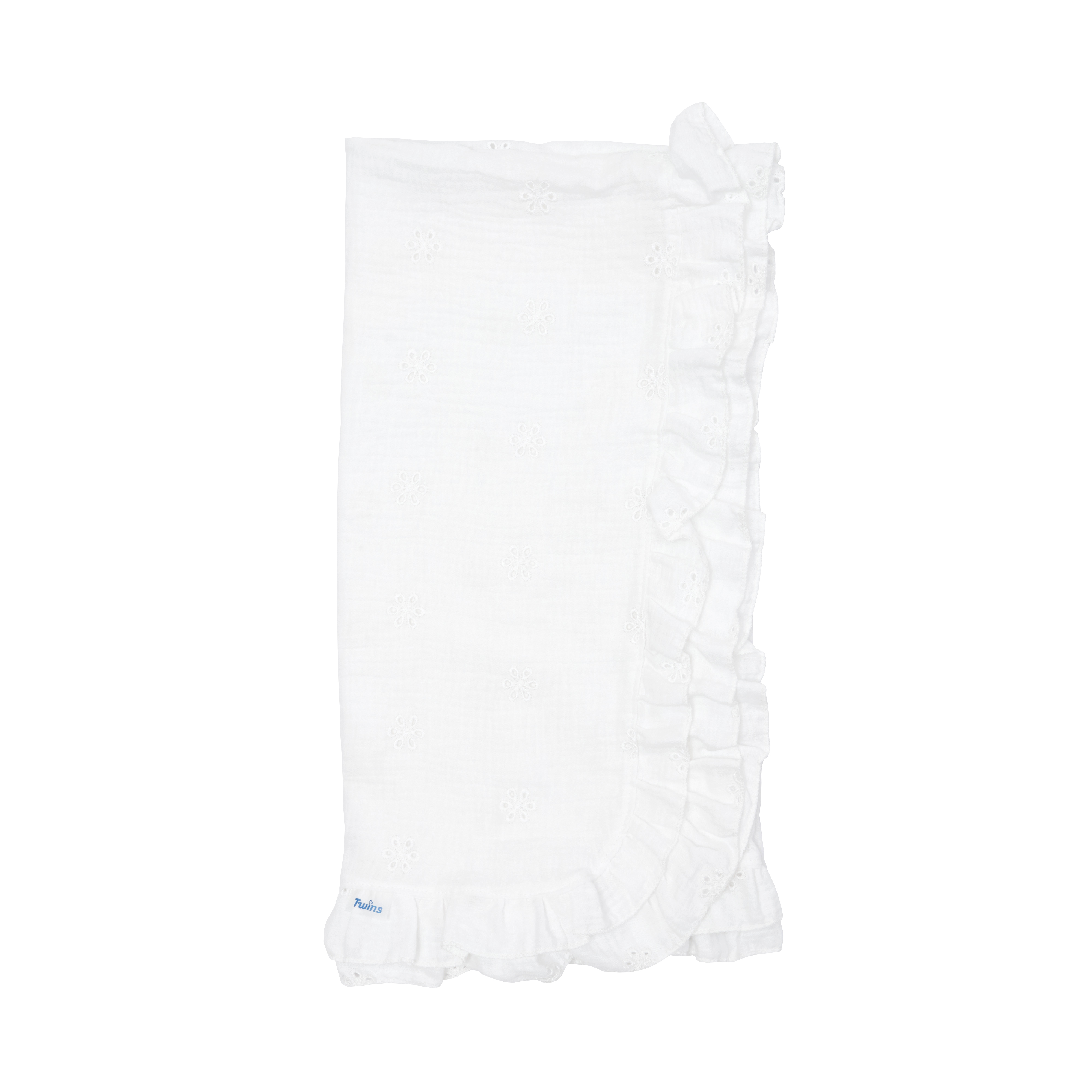 The Twins muslin blanket 100x100 Flower with ruffles is a stylish and delicate accessory for your baby.
