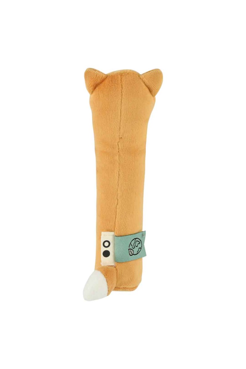 The children's plush hand squeaker toy is made of organic cotton and recycled polyester, which ensures softness and safety for sensitive baby skin.