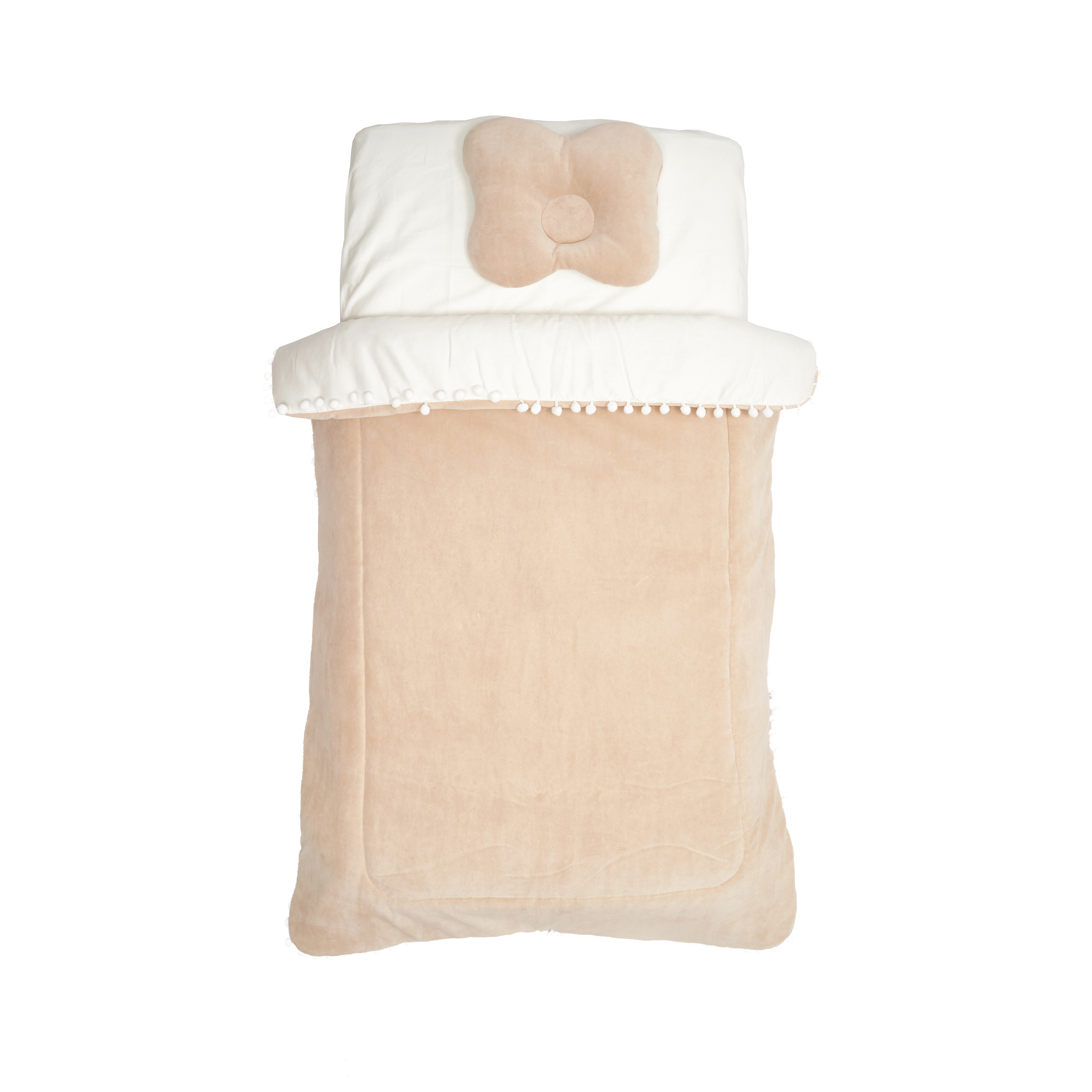 Bed set 3 el Twins velor/satin (blanket, orthopedic pillow, sheet) beige