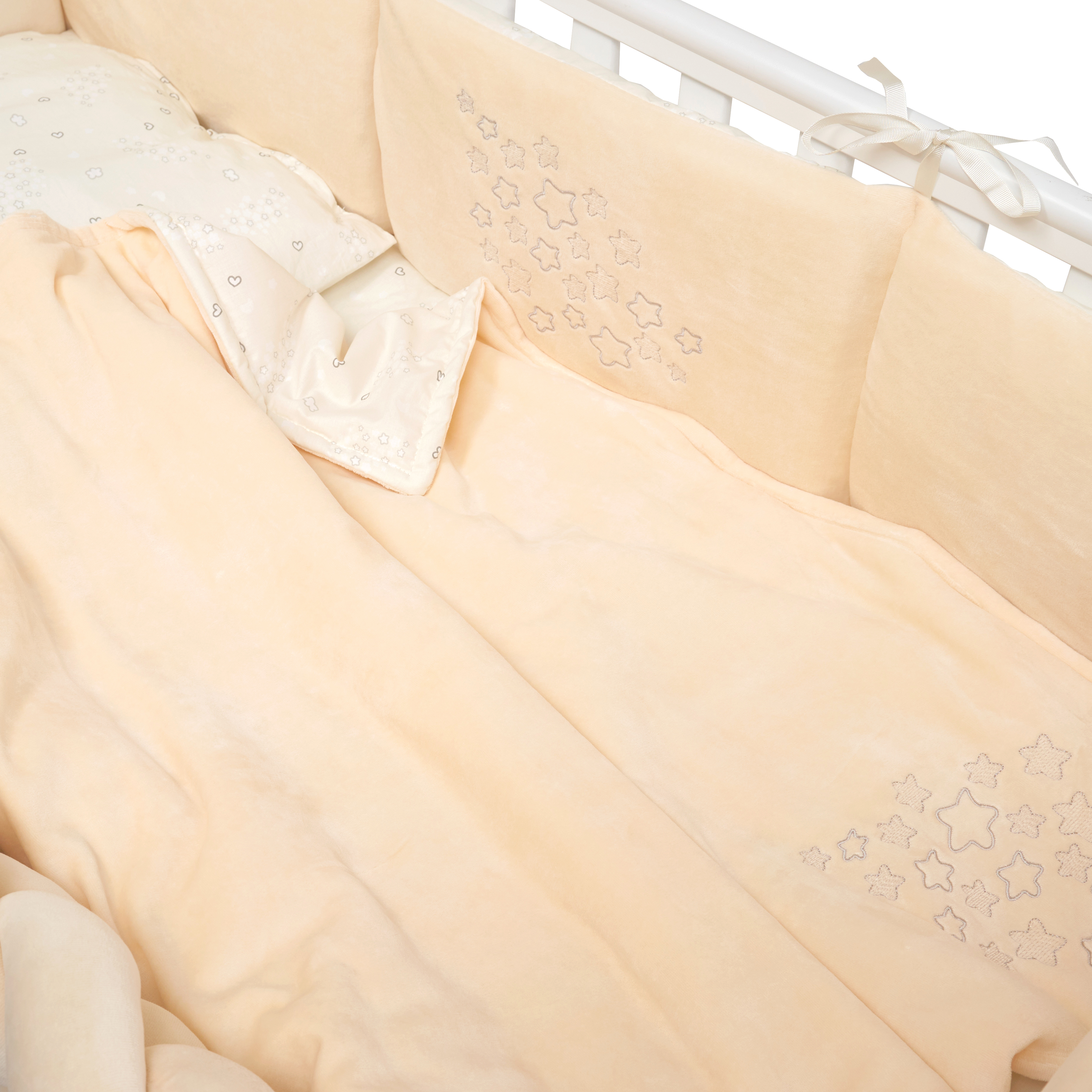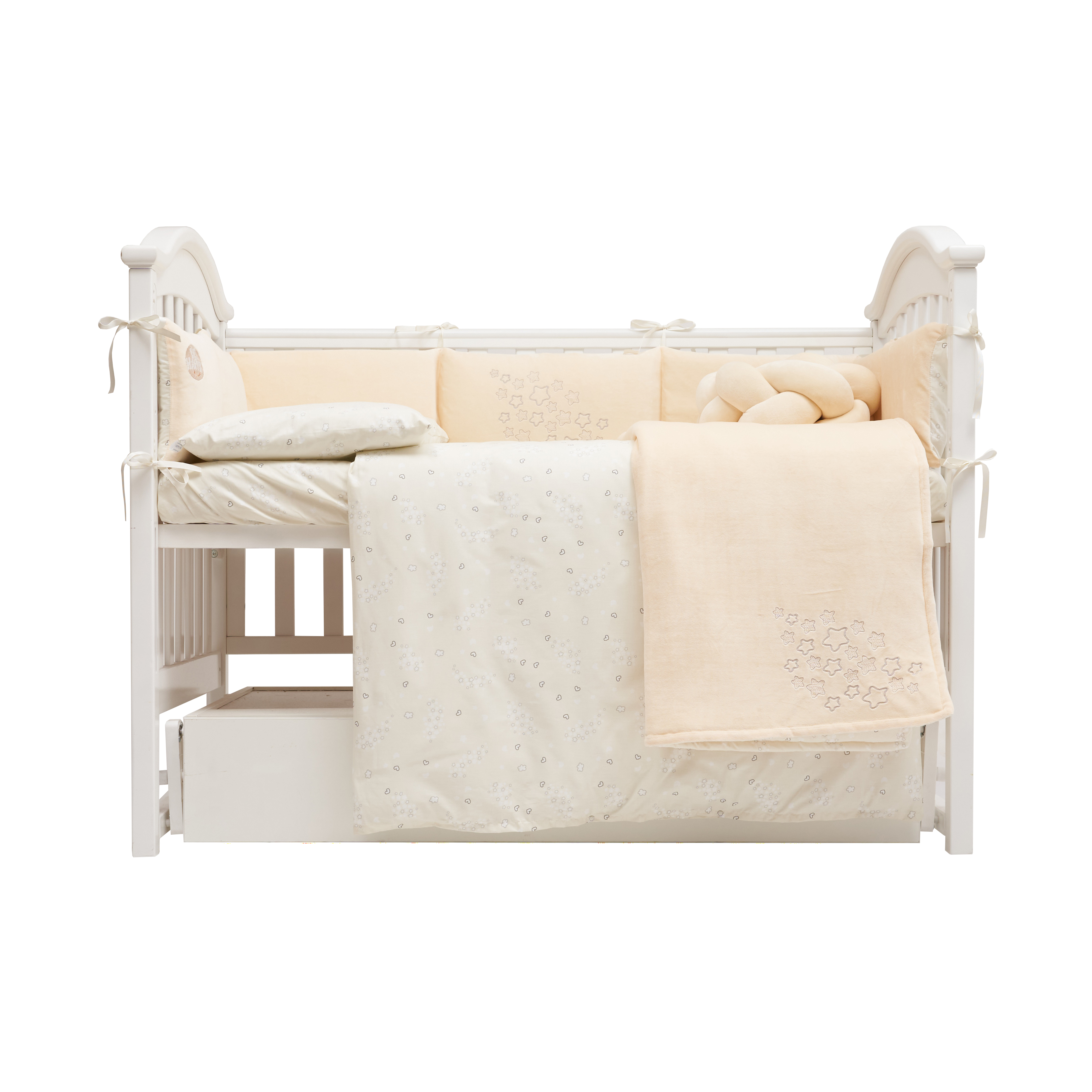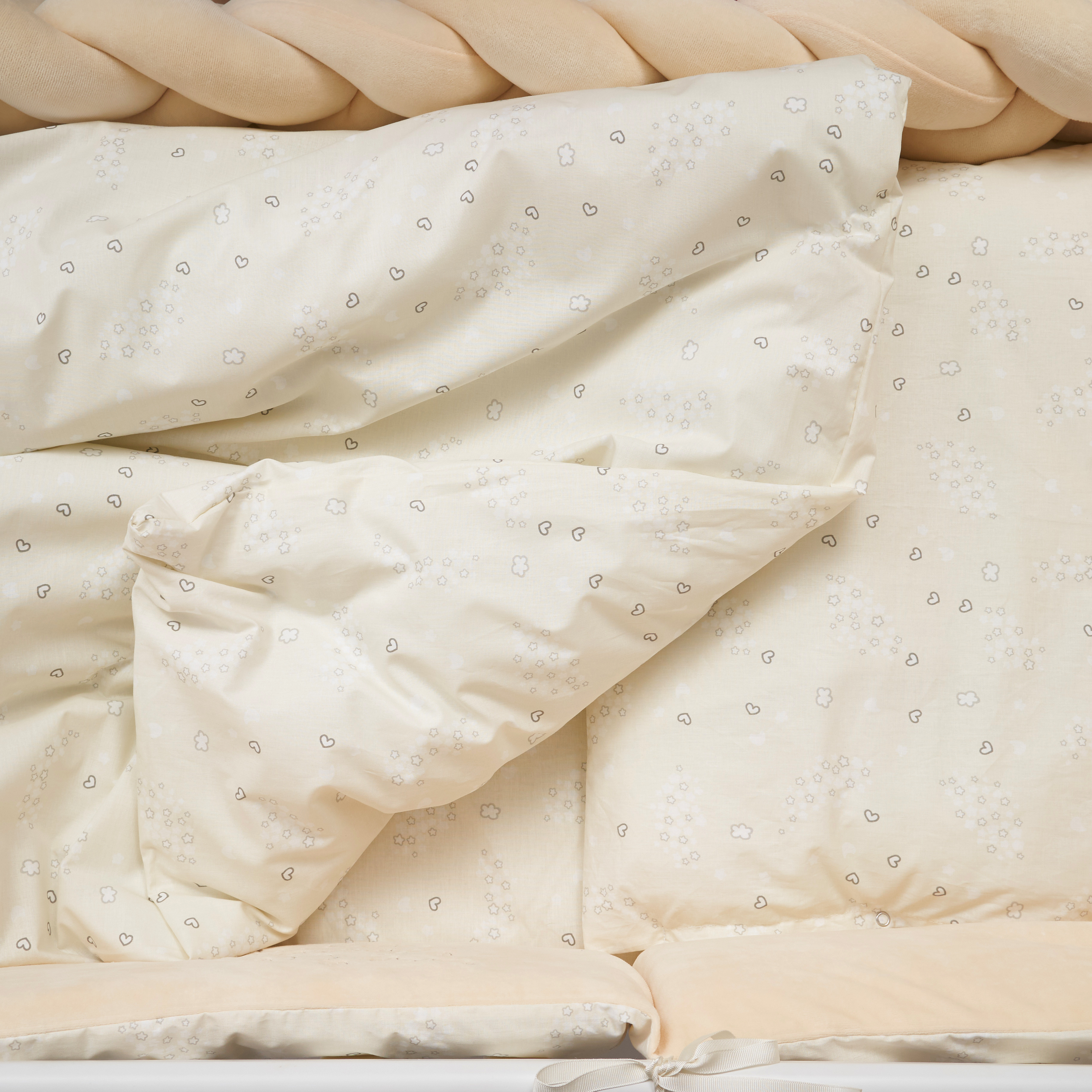The newborn bedding contains all the necessary elements to set up a place to sleep: a pillow, 2 pillowcases, a blanket, a duvet cover, a sheet, a rug, a bumper and a pigtail.