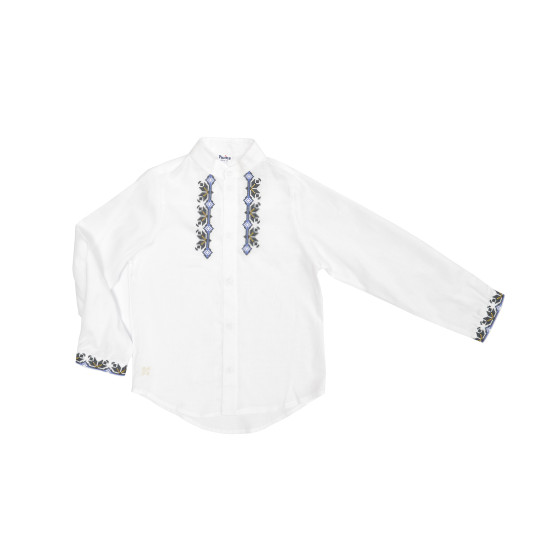 "Etno" is a stylish and laconic embroidered shirt for boys from the Ukrainian brand Twins, which combines traditional symbols with modern design.