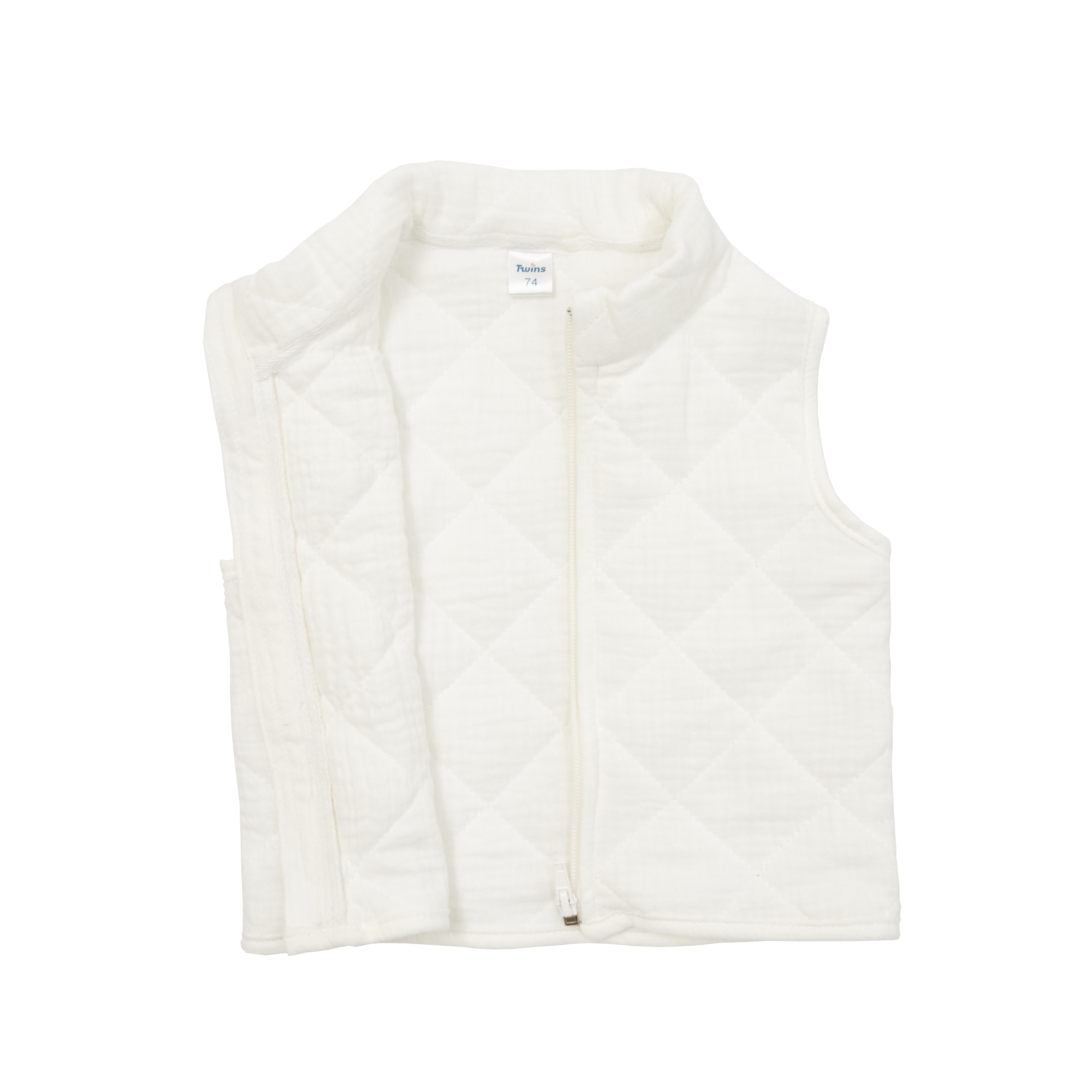 The Twins baby vest made of quilted insulated muslin is ideal for walks in cool summer evenings or early autumn.