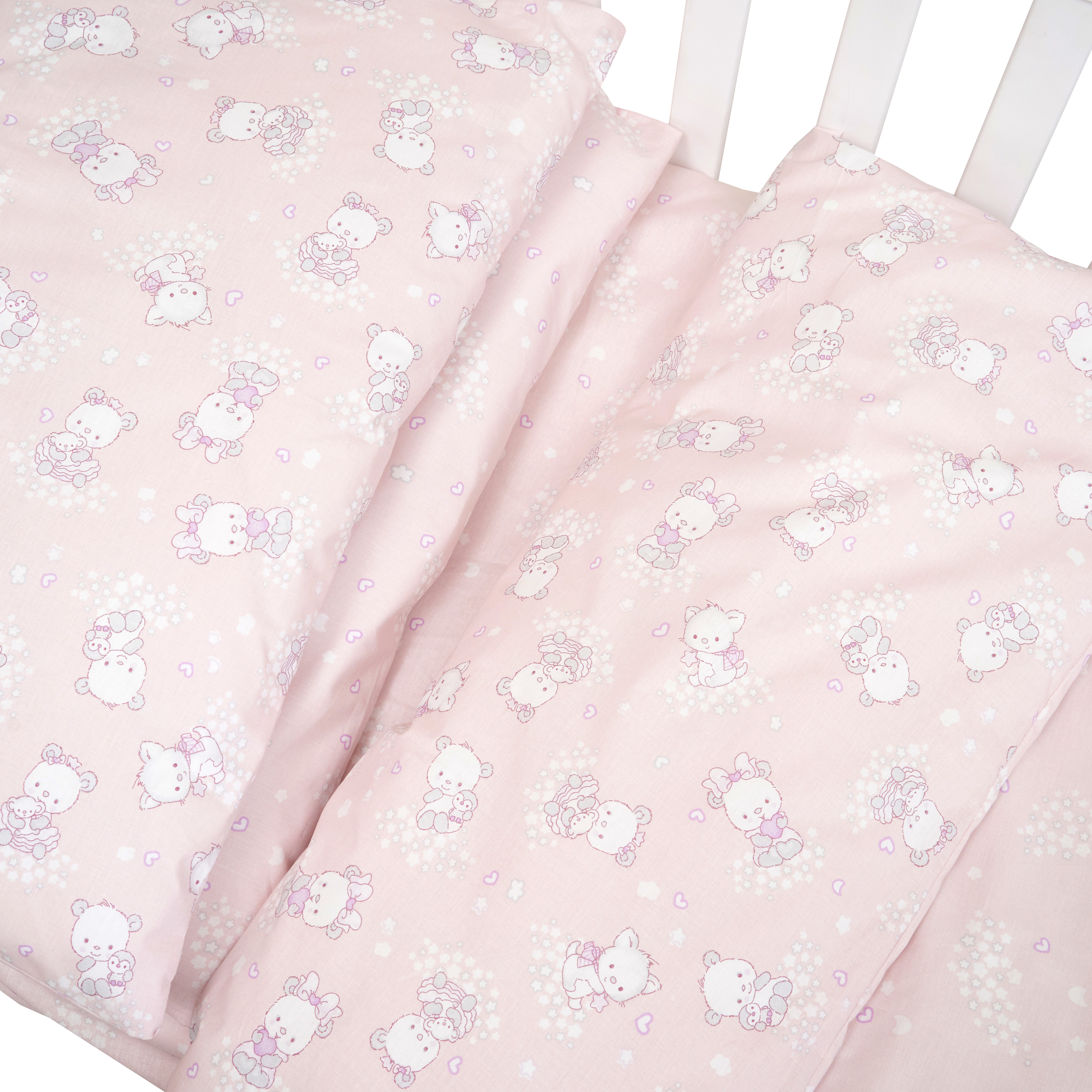 The Be Happy crib bedding set by Twins, consisting of a pillow, 2 pillowcases, a duvet cover and a sheet, is a manifestation of the most sincere care for your child.