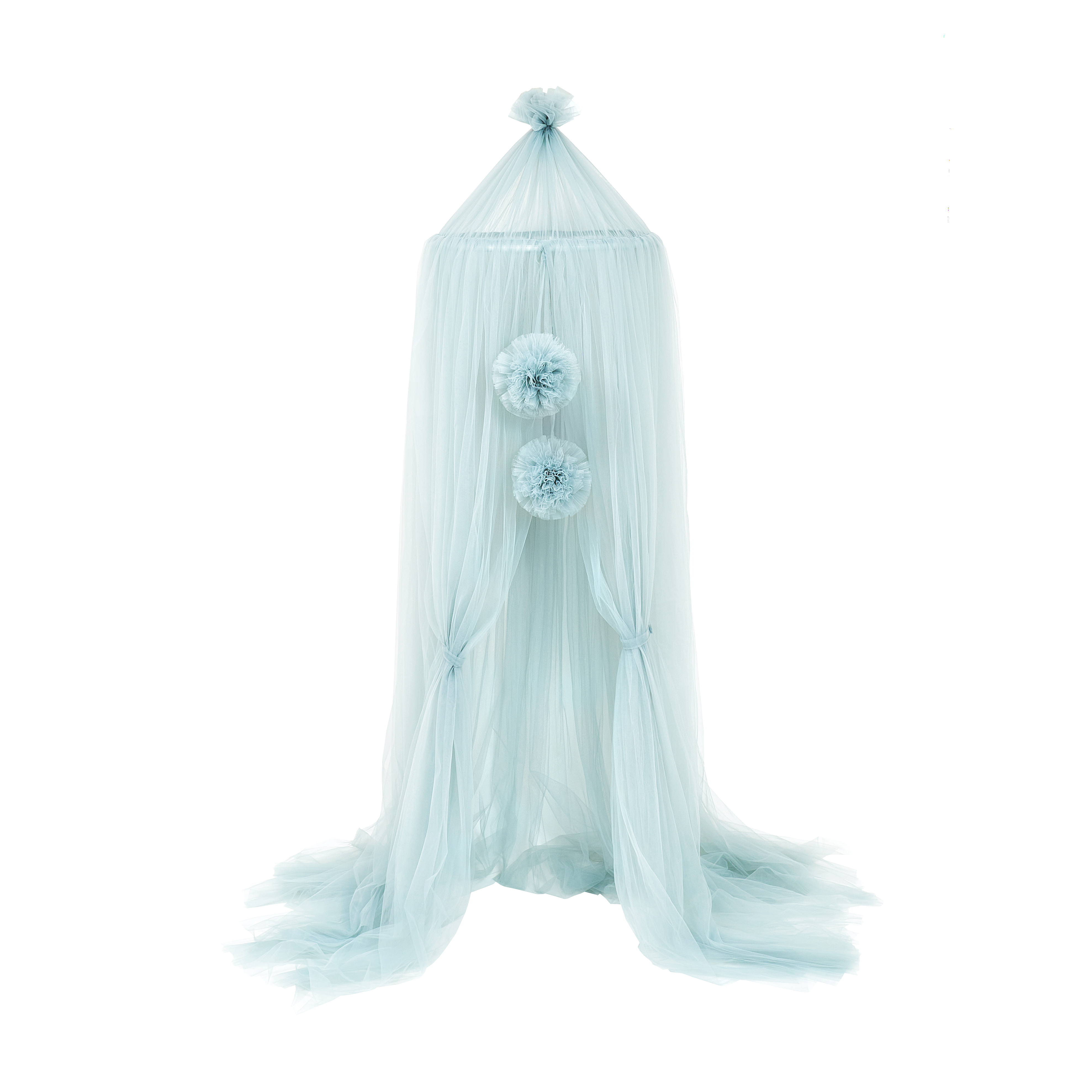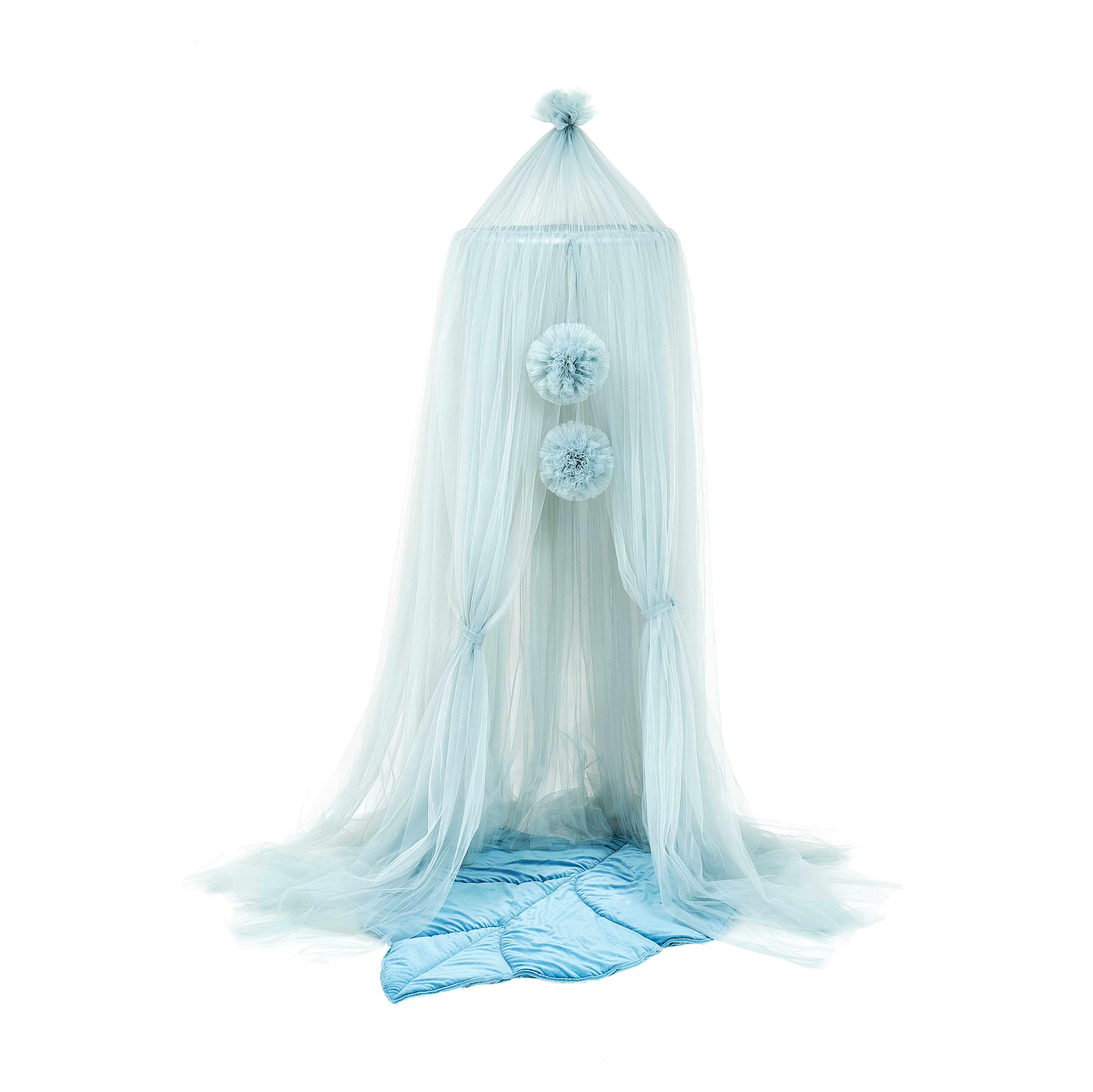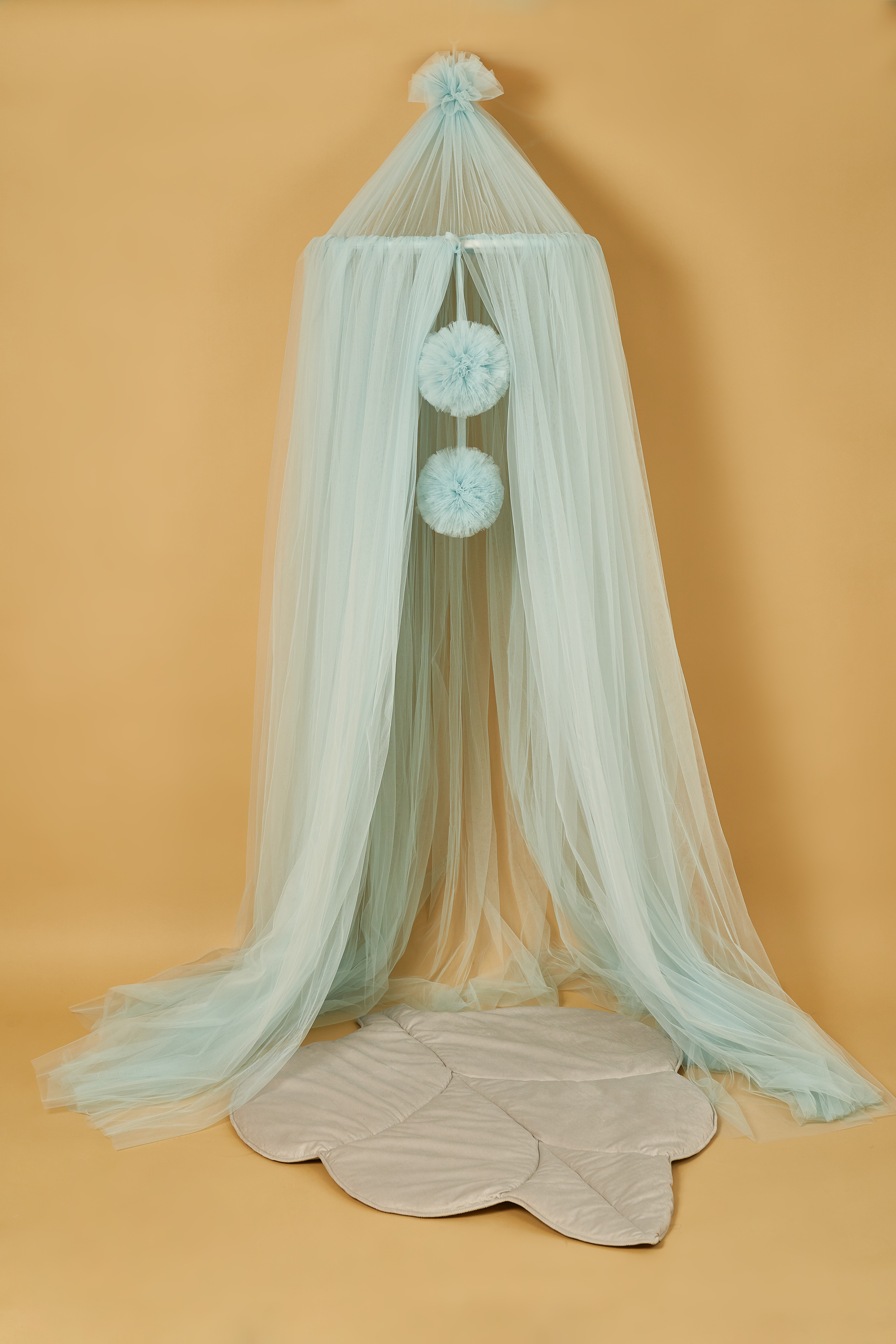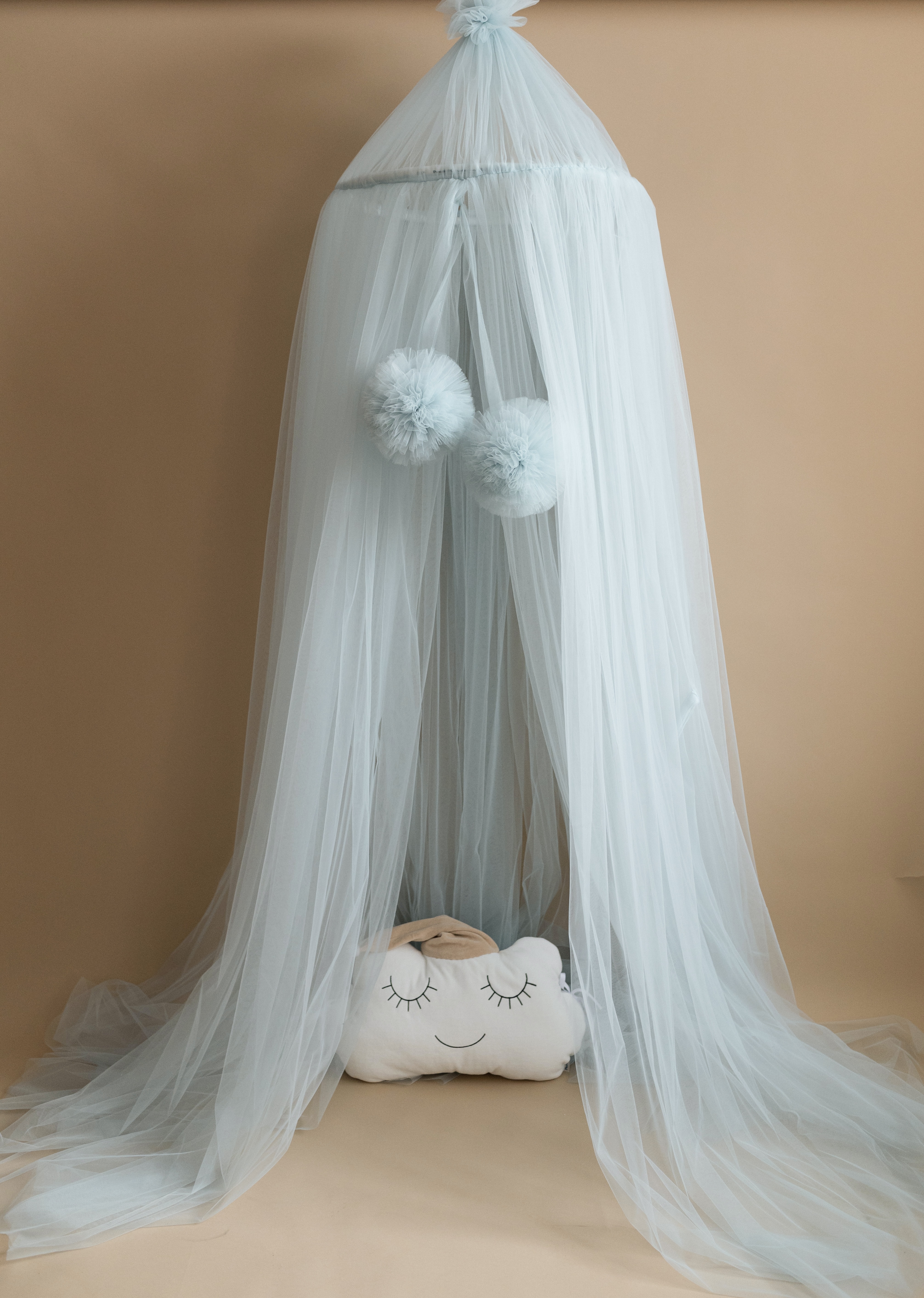 Балдахин изготовлен из нежного фатина, что создает эффект легкости и прозрачности, идеально подходит для детской комнаты.