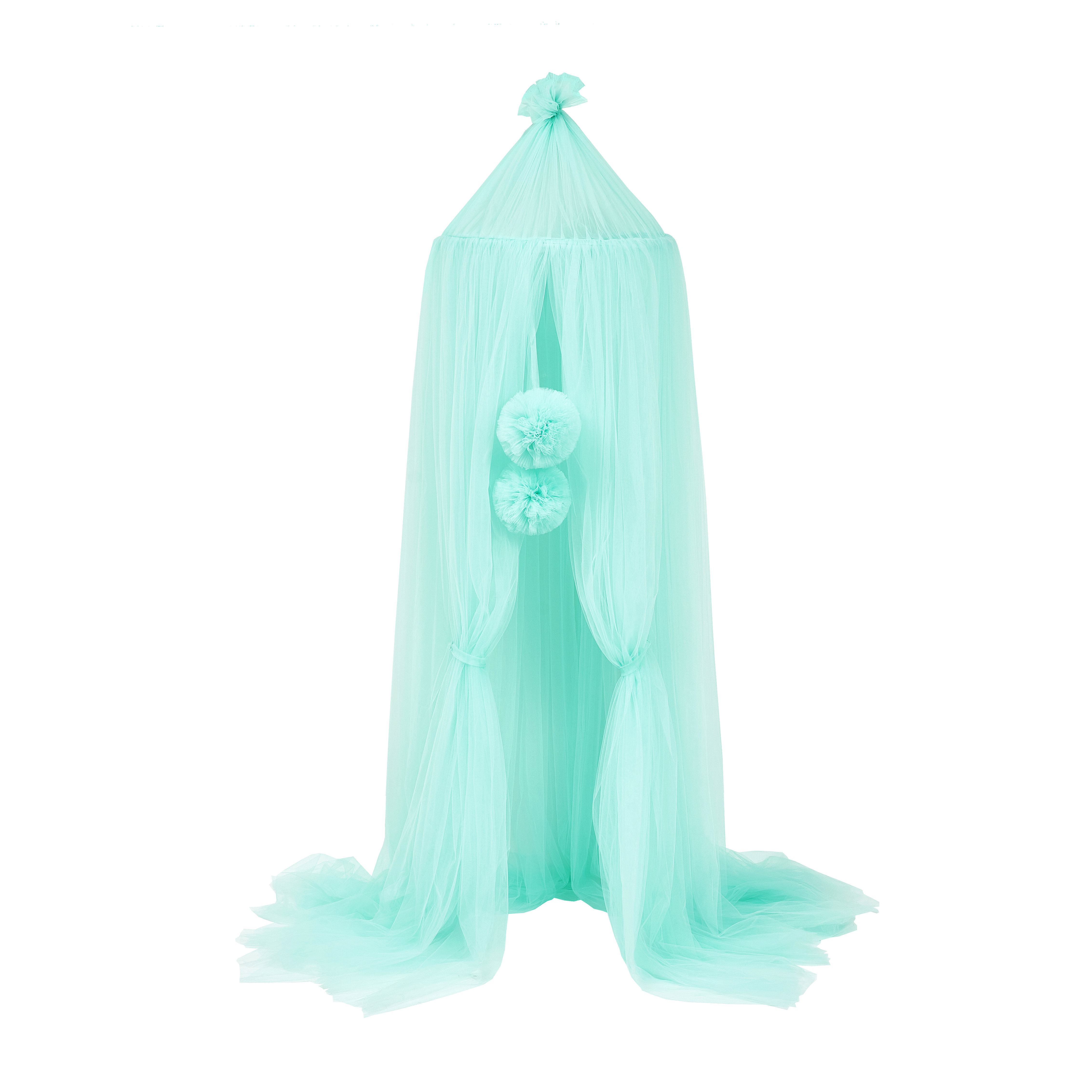 Балдахин изготовлен из нежного фатина, что создает эффект легкости и прозрачности, идеально подходит для детской комнаты.