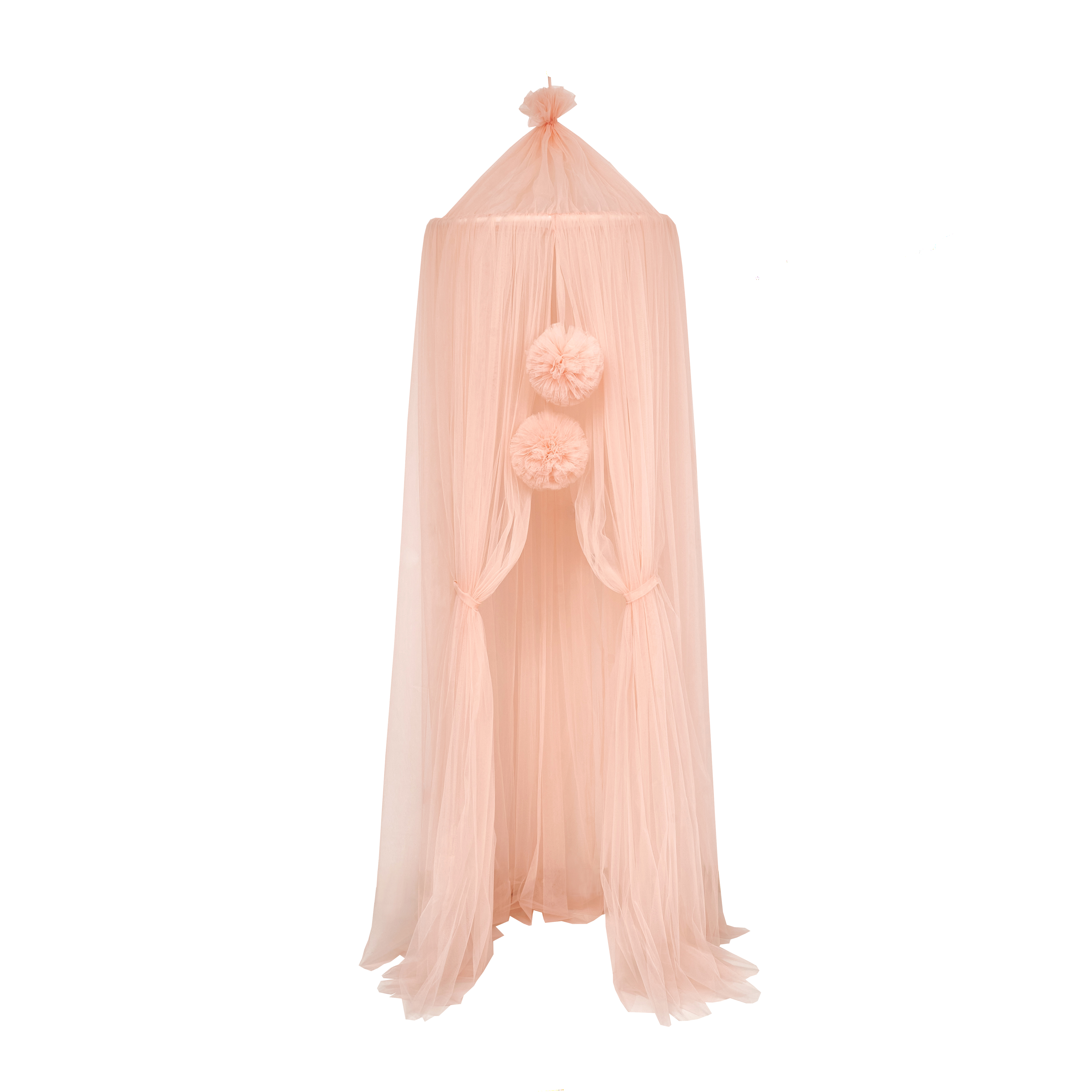 Балдахин изготовлен из нежного фатина, что создает эффект легкости и прозрачности, идеально подходит для детской комнаты.