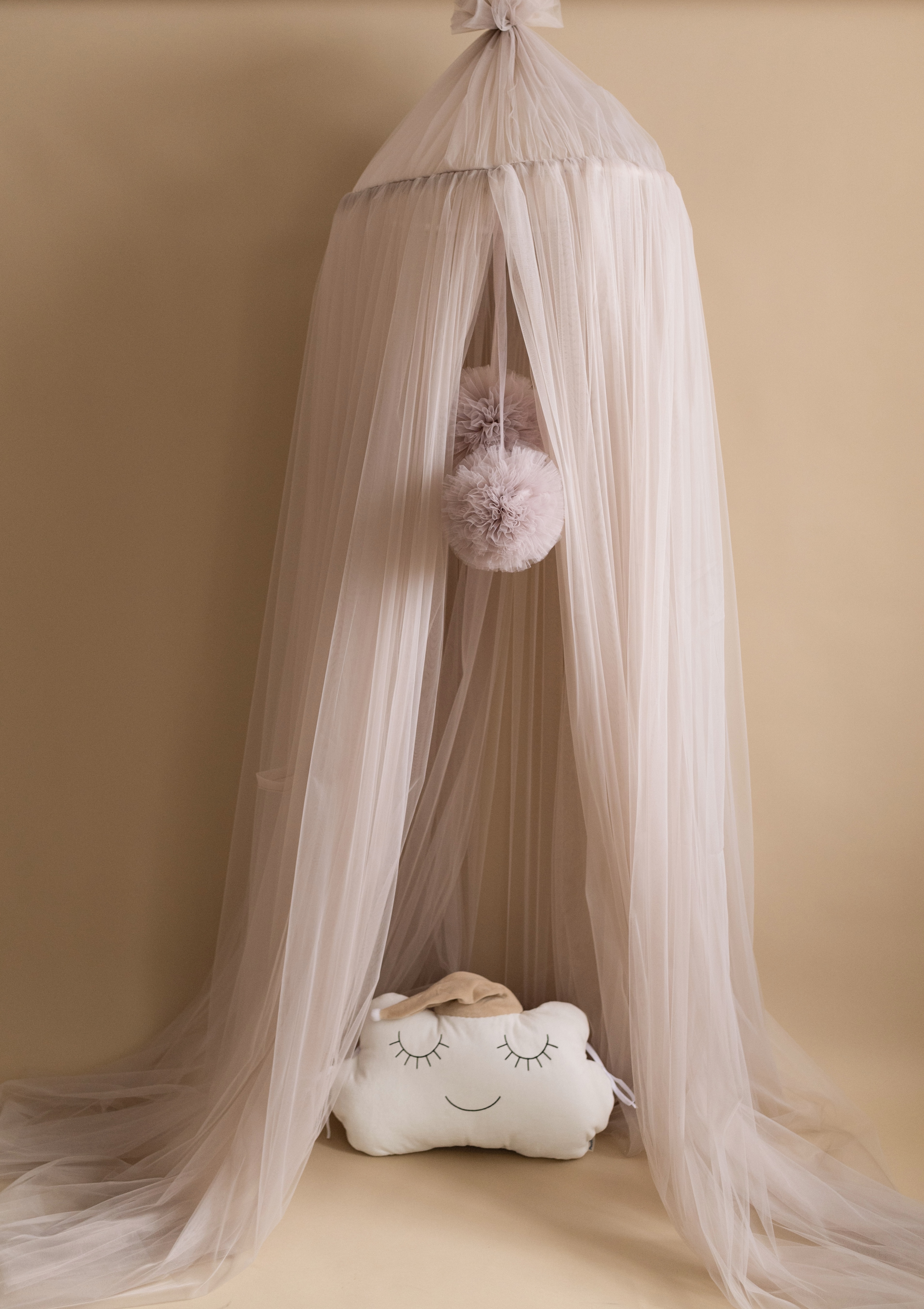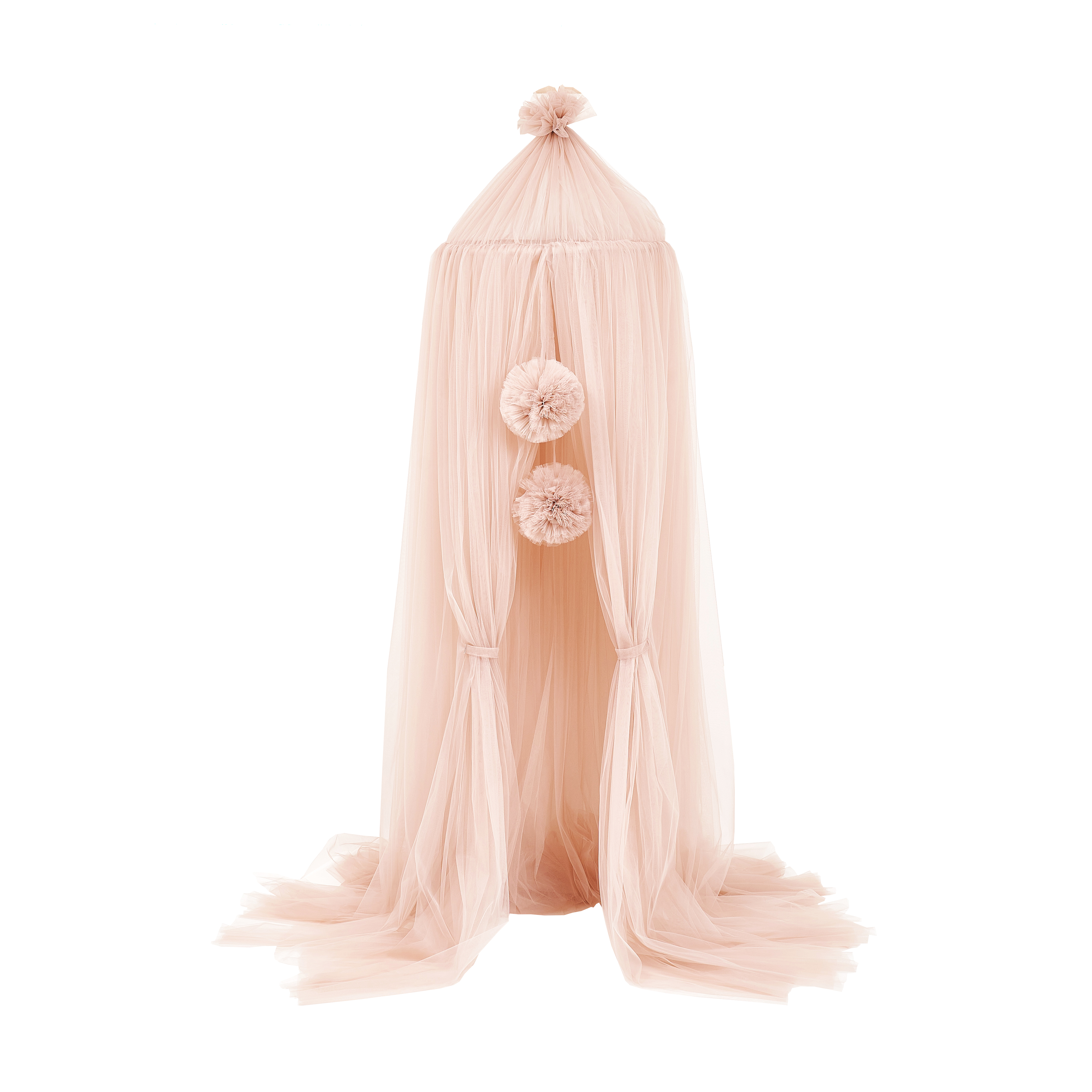 Балдахин изготовлен из нежного фатина, что создает эффект легкости и прозрачности, идеально подходит для детской комнаты.