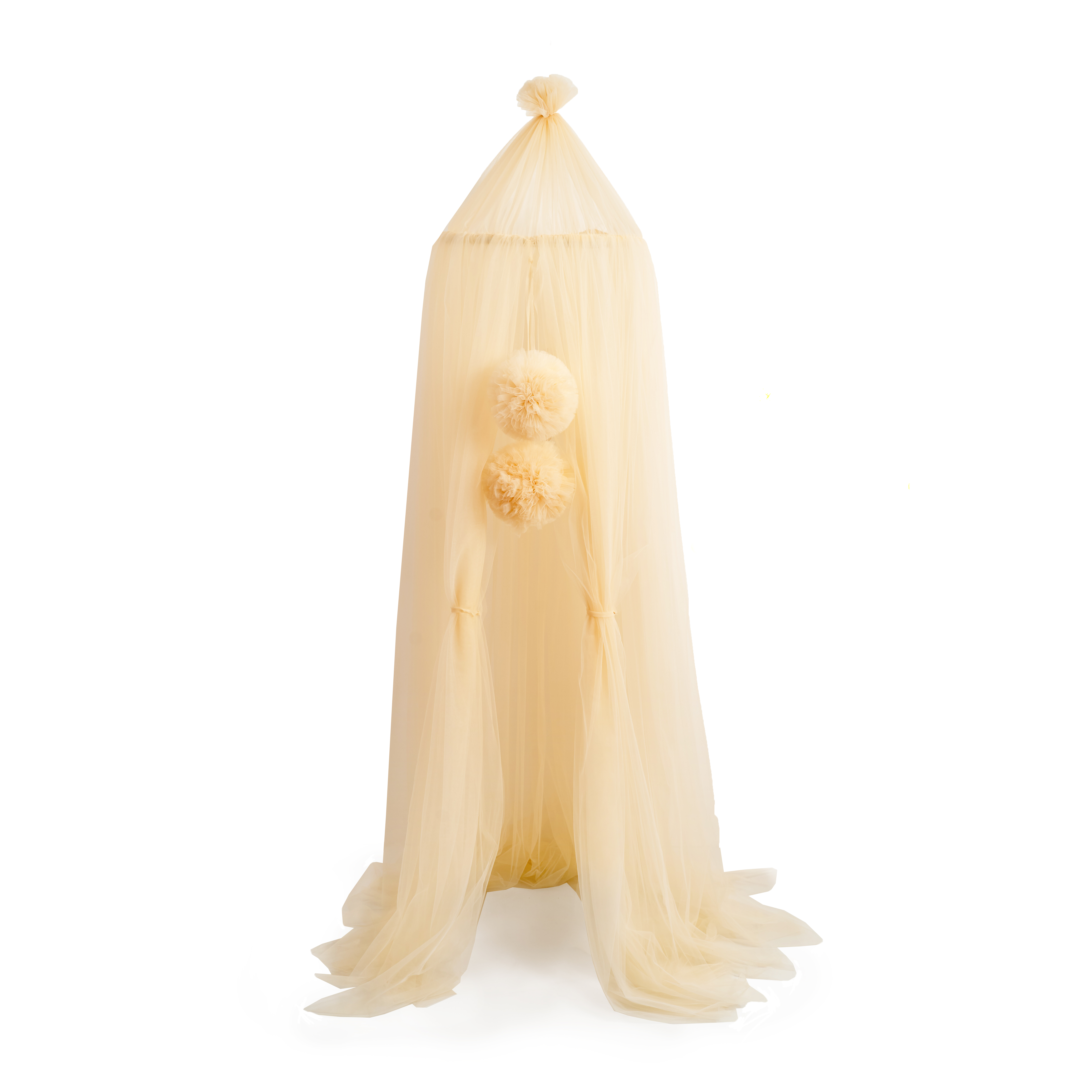 Балдахин изготовлен из нежного фатина, что создает эффект легкости и прозрачности, идеально подходит для детской комнаты.