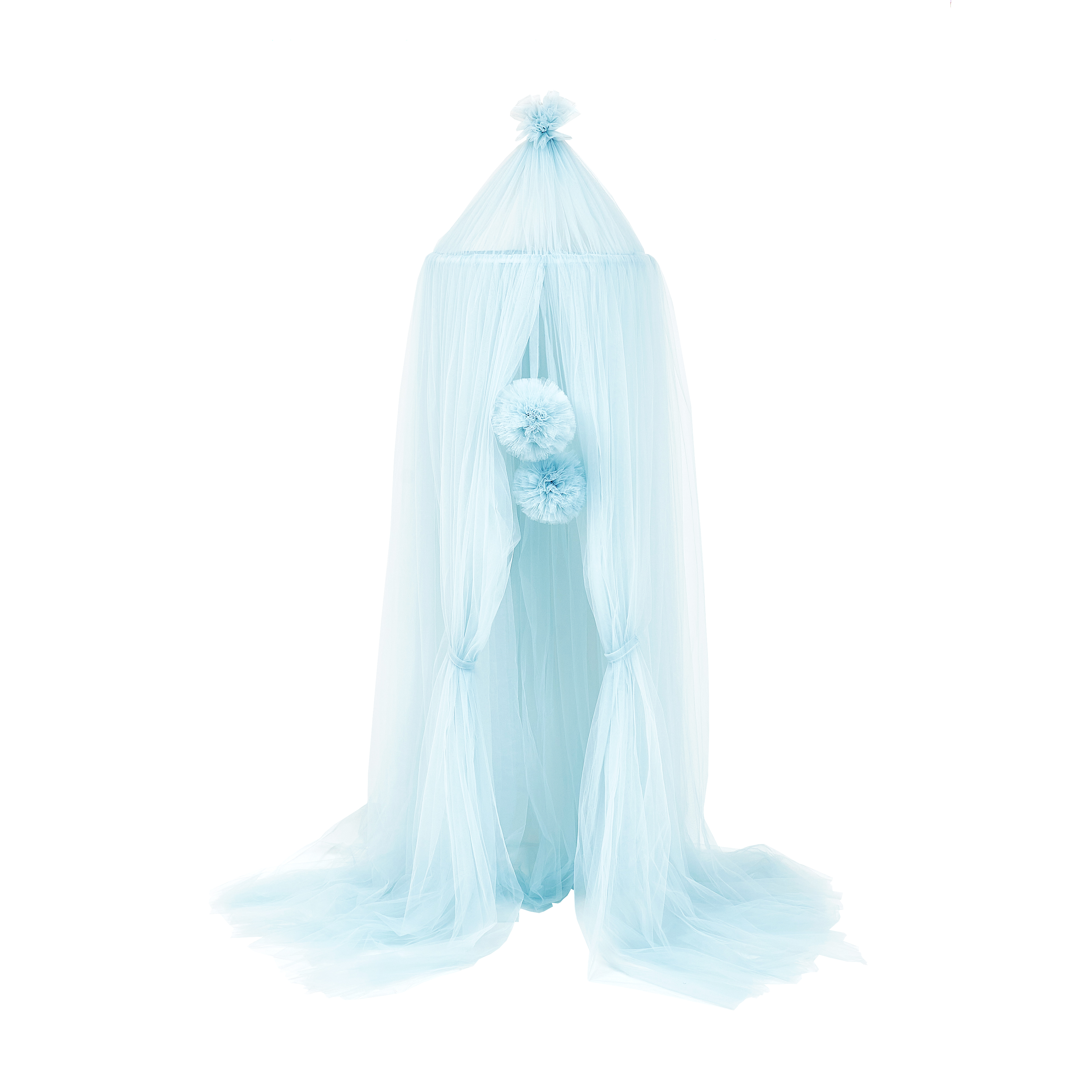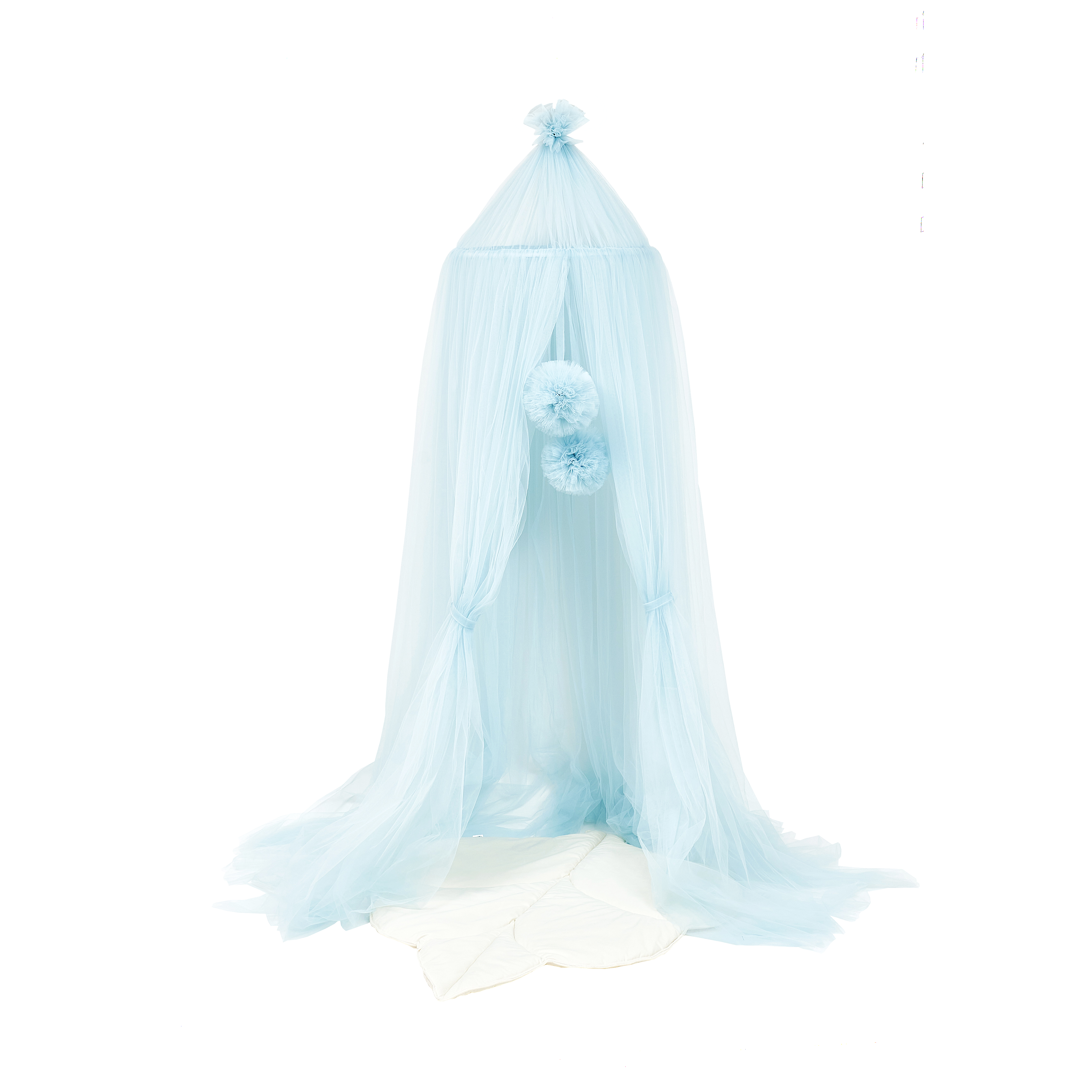 Балдахин изготовлен из нежного фатина, что создает эффект легкости и прозрачности, идеально подходит для детской комнаты.