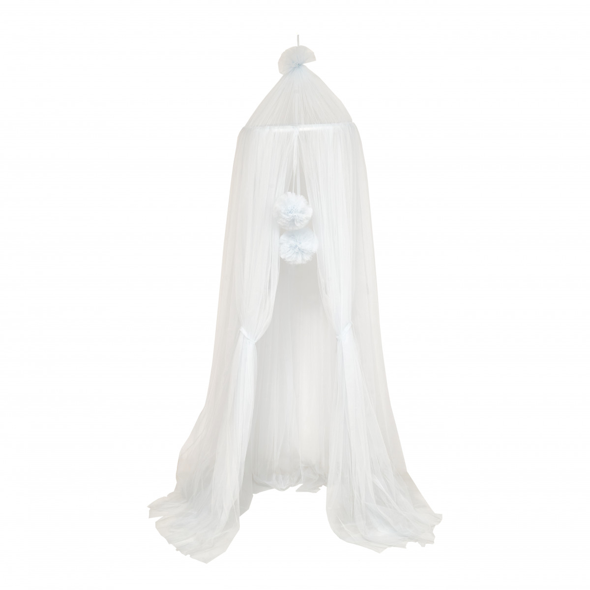 Балдахин изготовлен из нежного фатина, что создает эффект легкости и прозрачности, идеально подходит для детской комнаты.