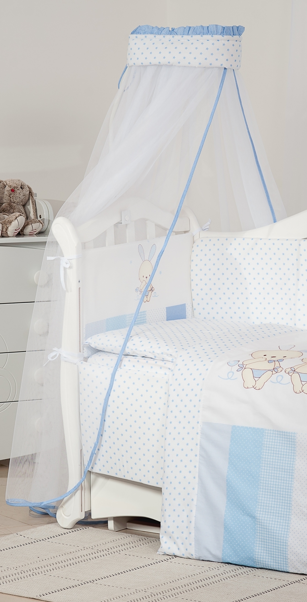 Балдахин Twins Dolce Друзья зайчики - прекрасный вариант для оформления детской комнаты, добавляет сказочной атмосферы и уюта, создает успокаивающий эффект для ребенка, ощущение комфорта и защиты. Нежная, прозрачная вуаль подойдет для любой кроватки и интерьера.