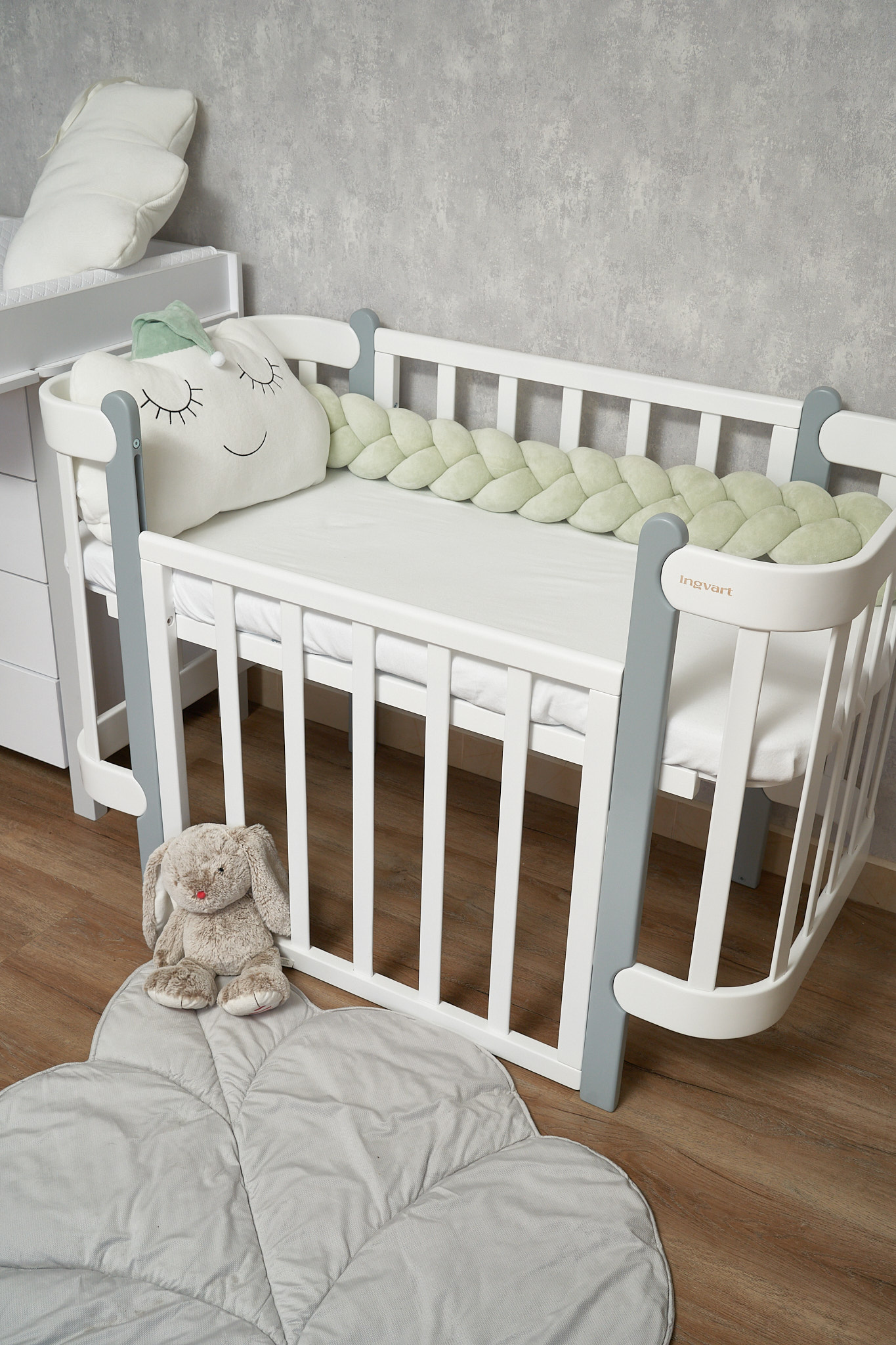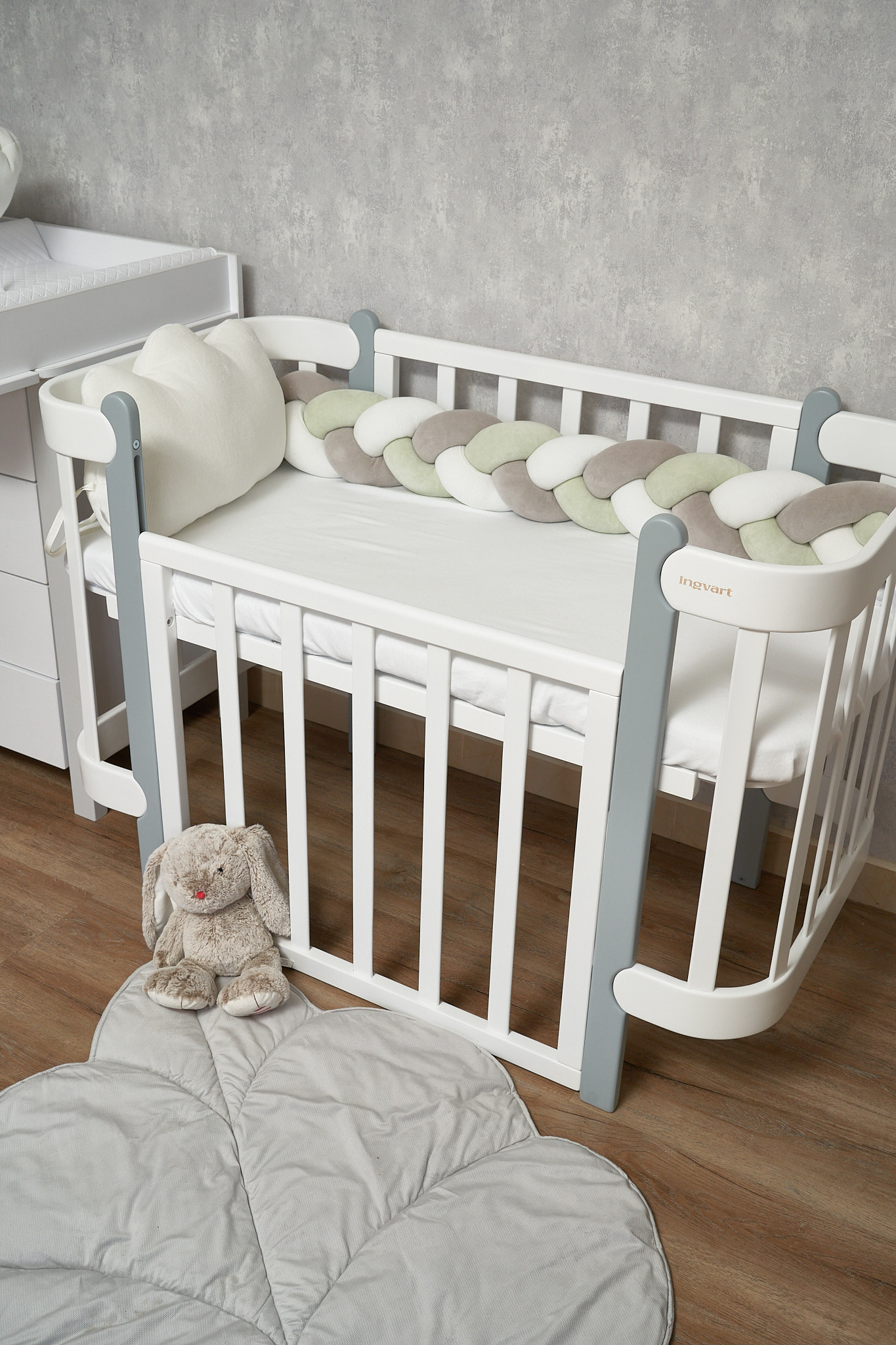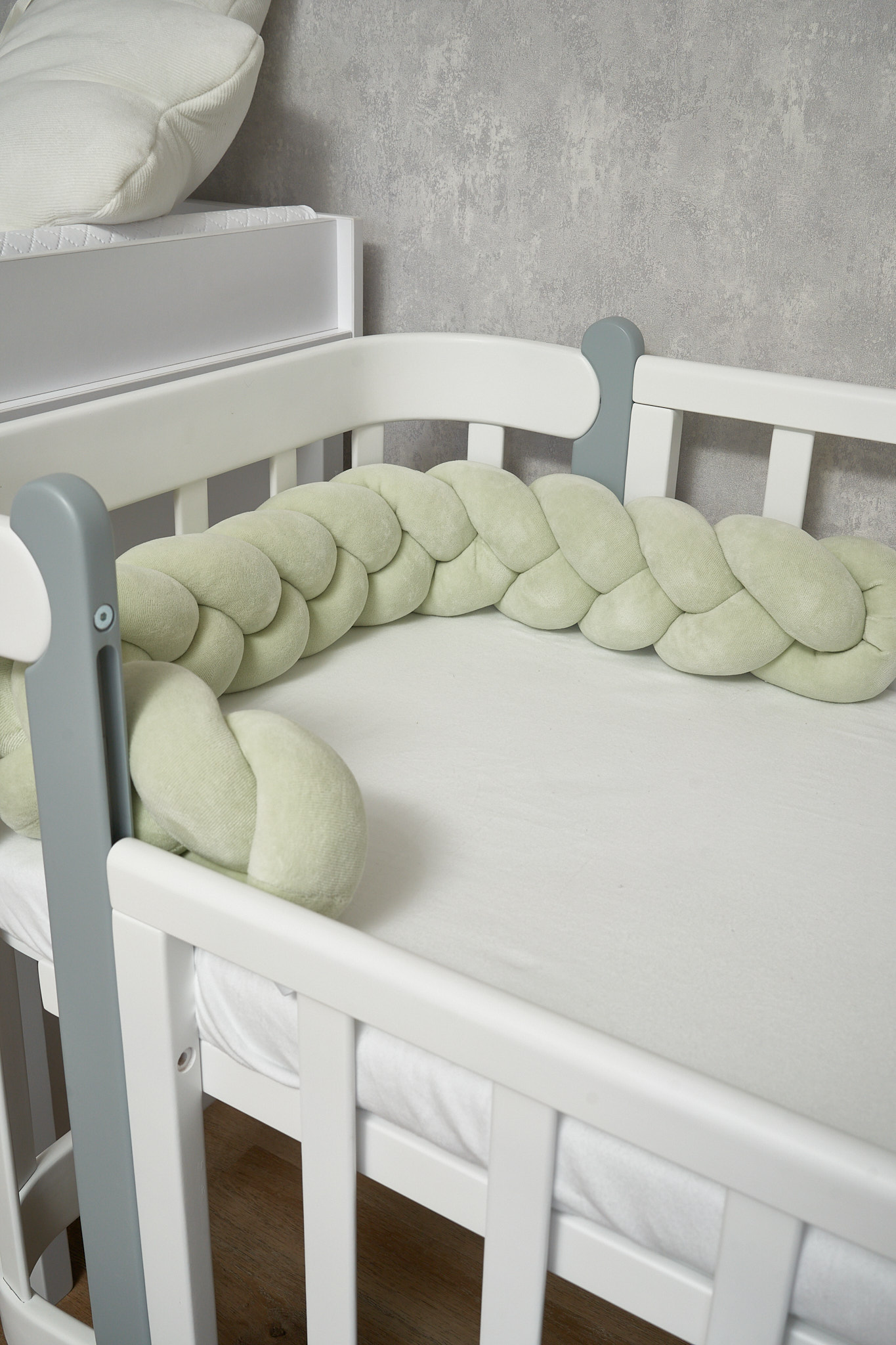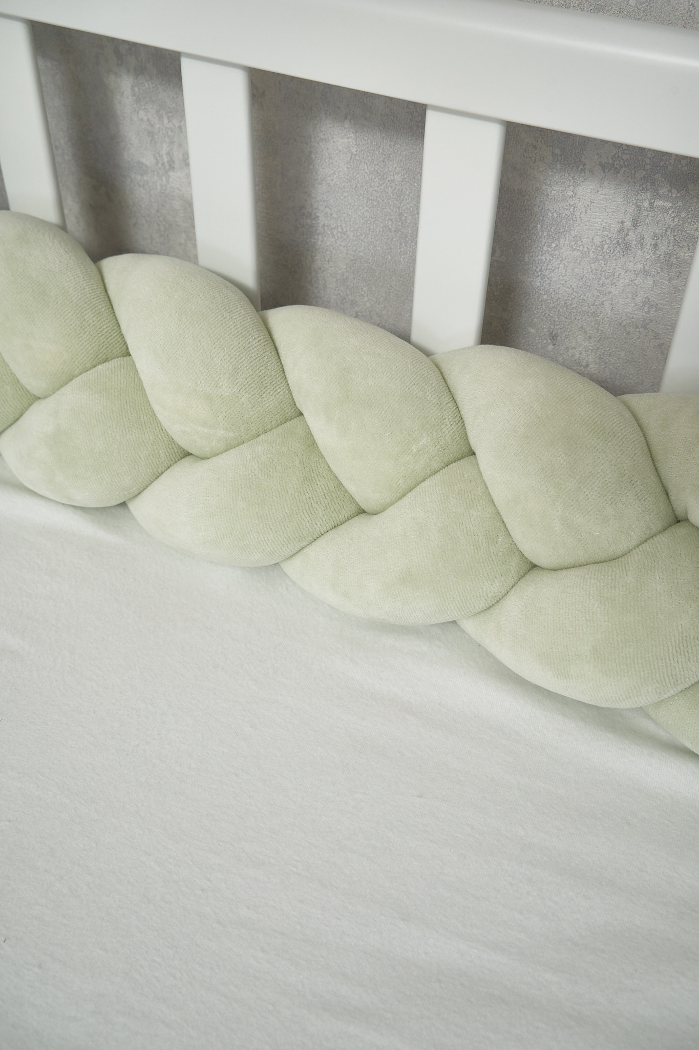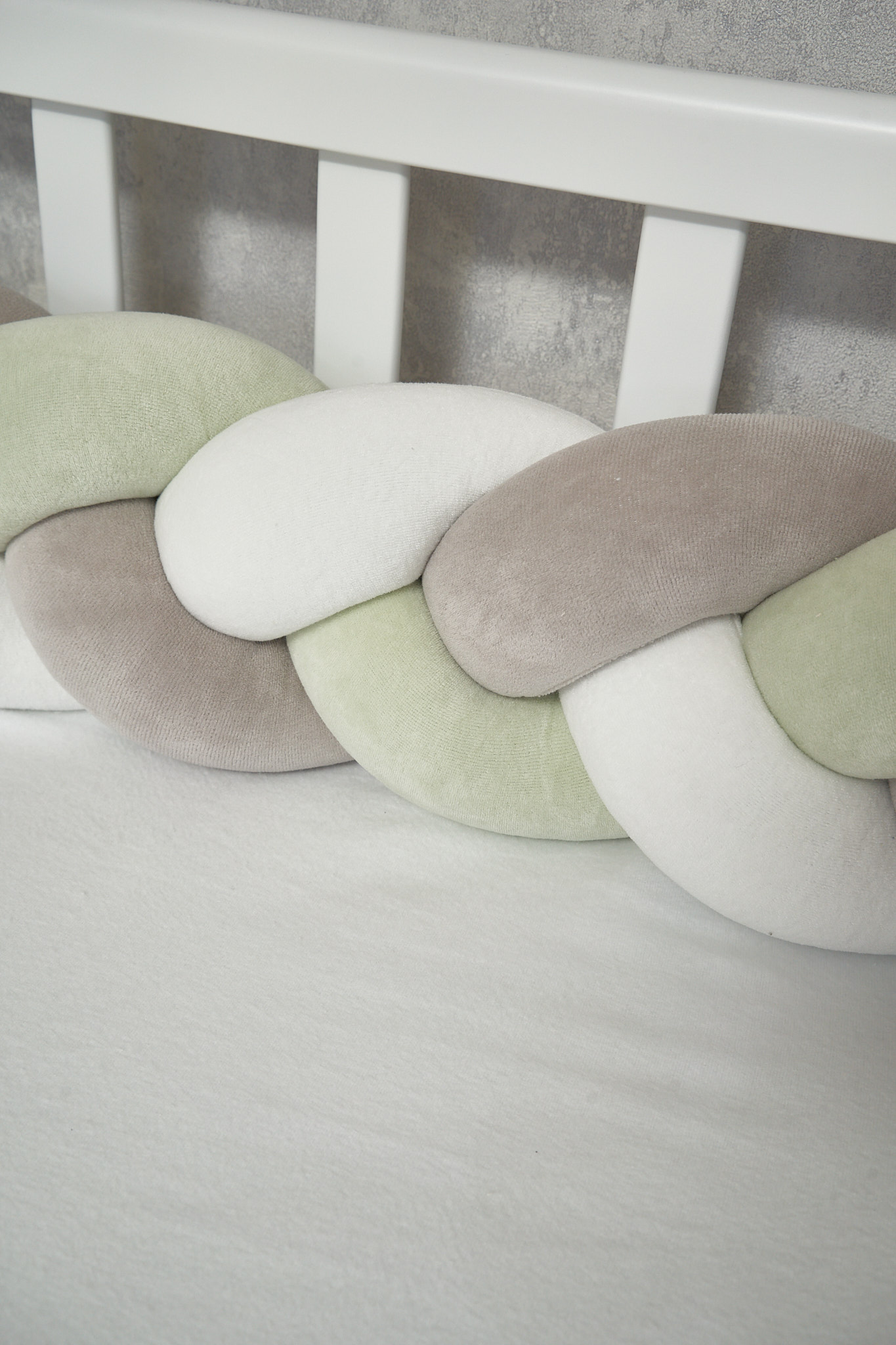 Благодаря стильному дизайну в форме косы бампер гармонично дополнит интерьер детской комнаты, а его нежная текстура подарит малышу уют и комфорт.