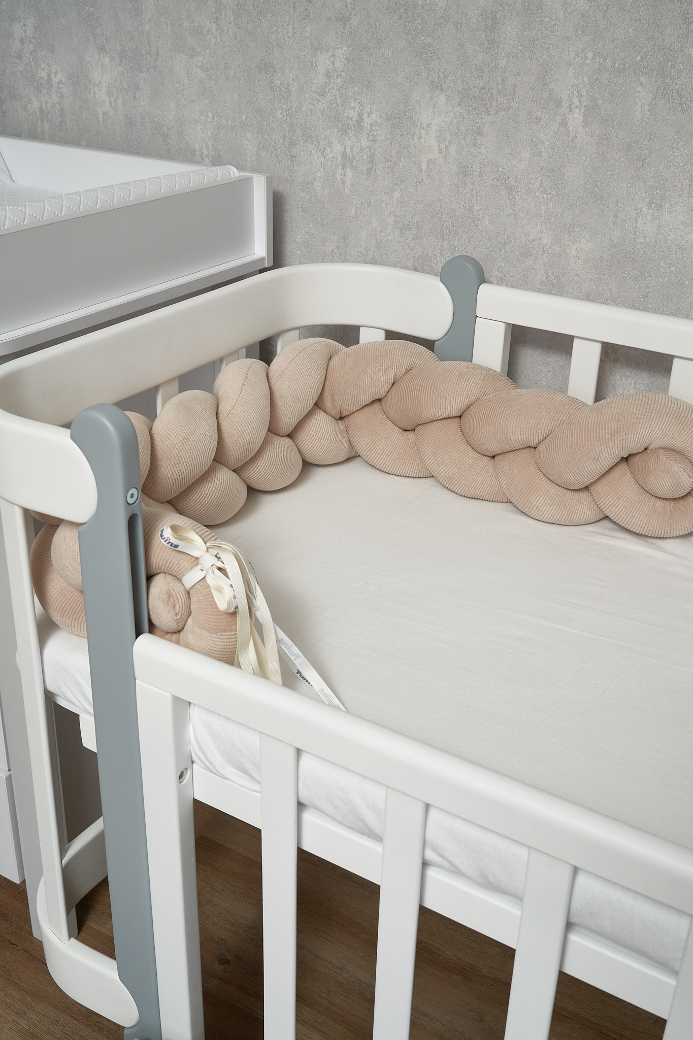 Благодаря стильному дизайну в форме косы бампер гармонично дополнит интерьер детской комнаты, а его нежная текстура подарит малышу уют и комфорт.