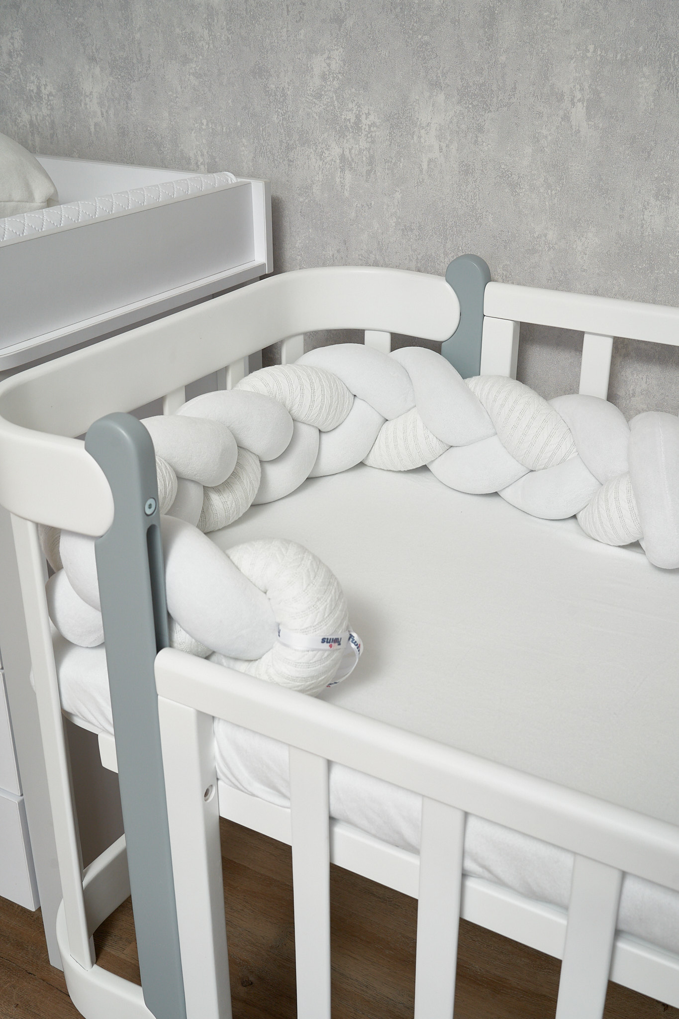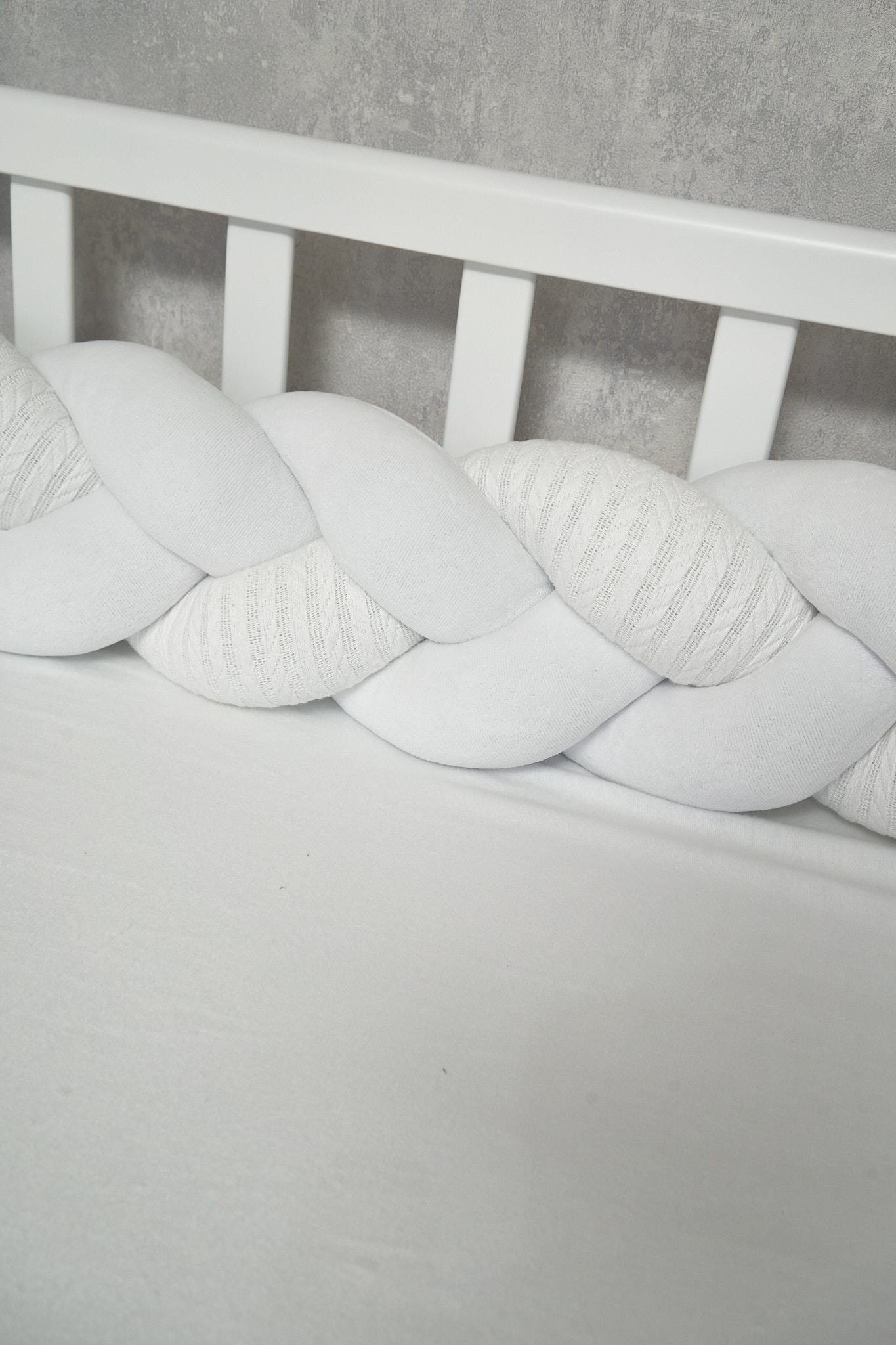 Благодаря стильному дизайну в форме косы бампер гармонично дополнит интерьер детской комнаты, а его нежная текстура подарит малышу уют и комфорт.