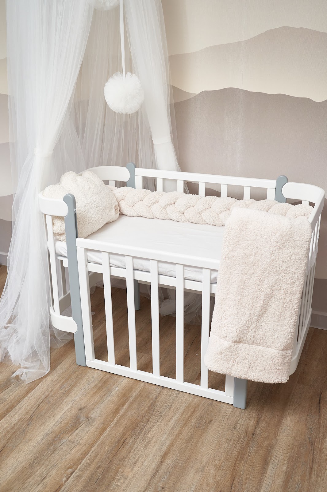 Благодаря стильному дизайну в форме косы бампер гармонично дополнит интерьер детской комнаты, а его нежная текстура подарит малышу уют и комфорт.