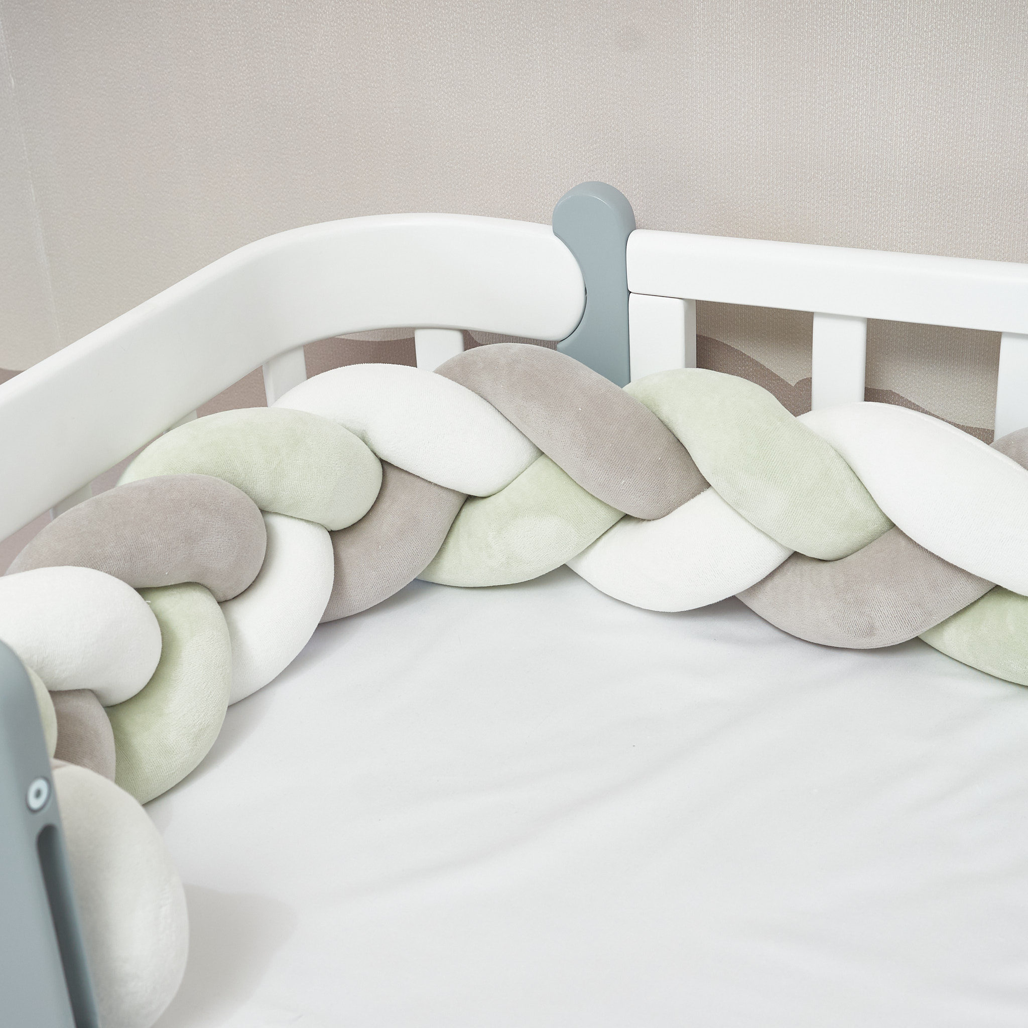 Благодаря стильному дизайну в форме косы бампер гармонично дополнит интерьер детской комнаты, а его нежная текстура подарит малышу уют и комфорт.