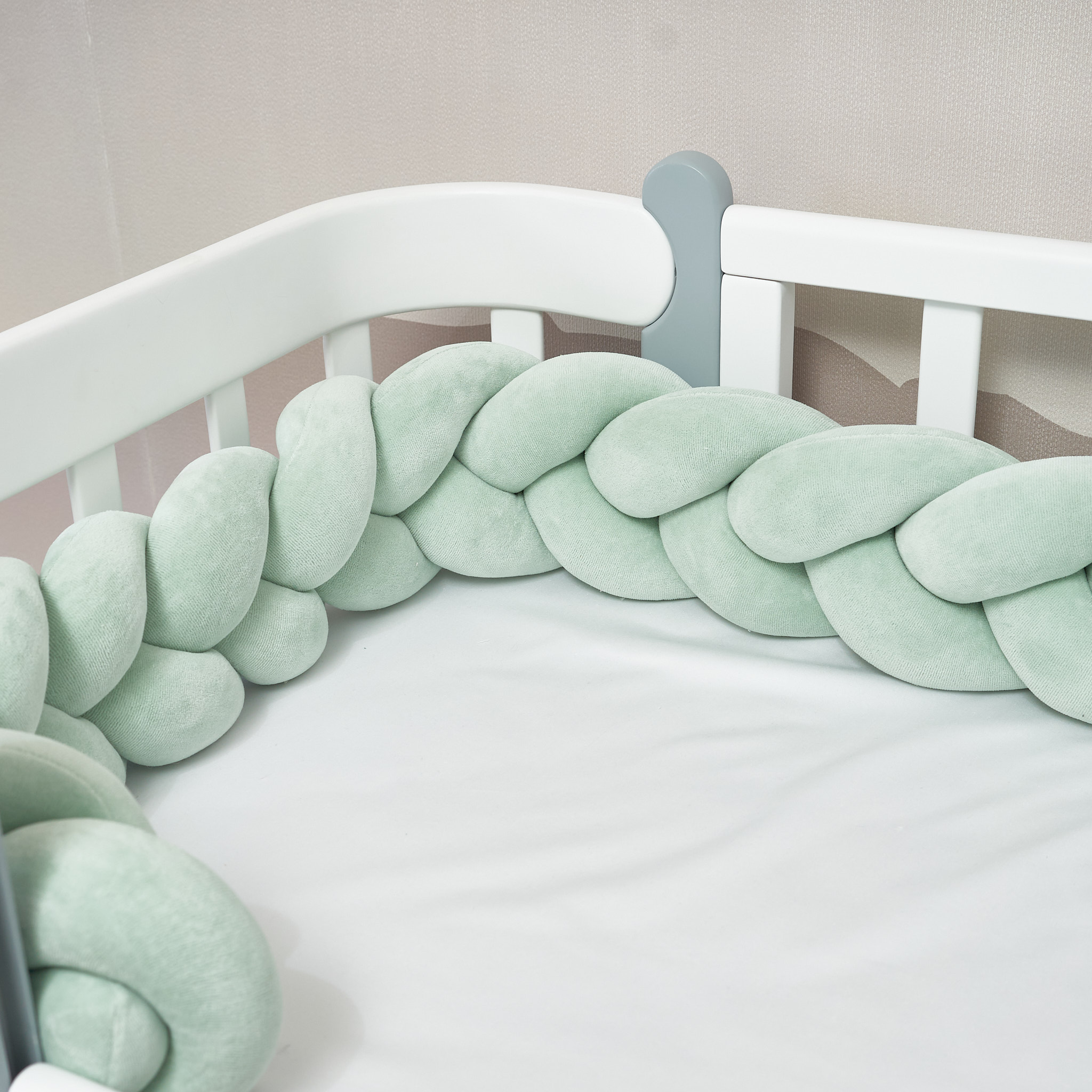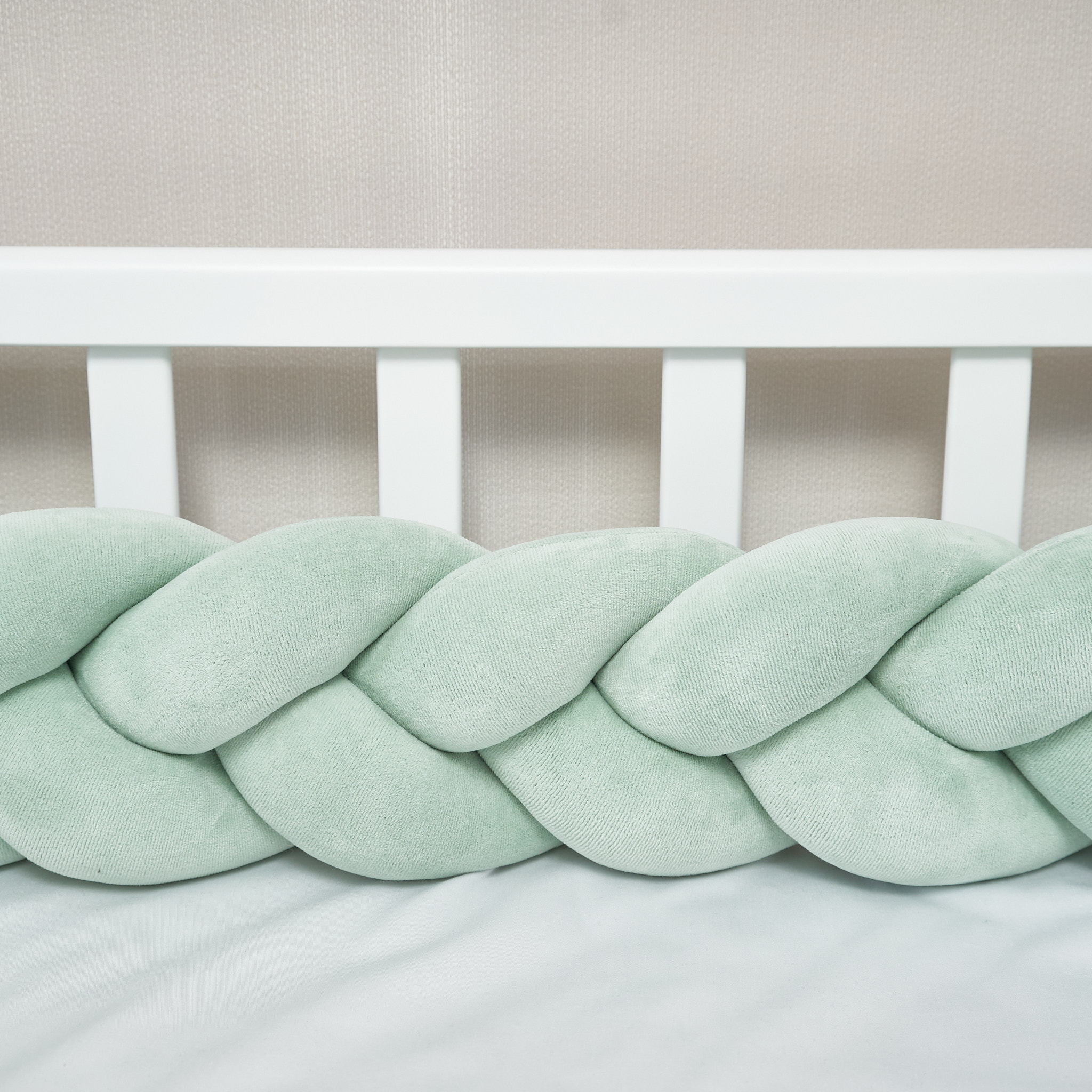 Благодаря стильному дизайну в форме косы бампер гармонично дополнит интерьер детской комнаты, а его нежная текстура подарит малышу уют и комфорт.