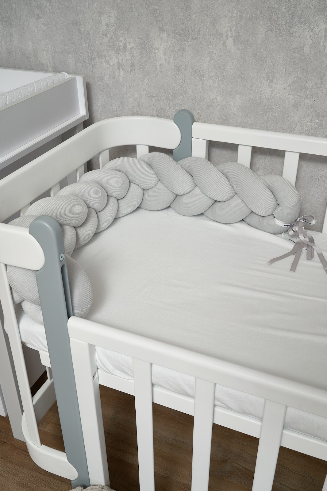 Благодаря стильному дизайну в форме косы бампер гармонично дополнит интерьер детской комнаты, а его нежная текстура подарит малышу уют и комфорт.
