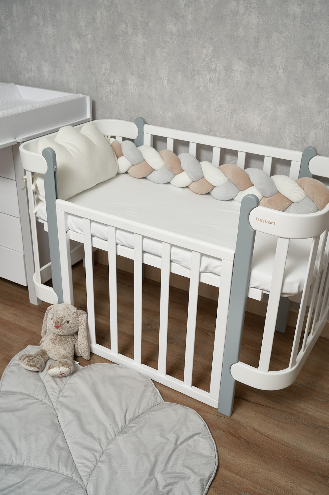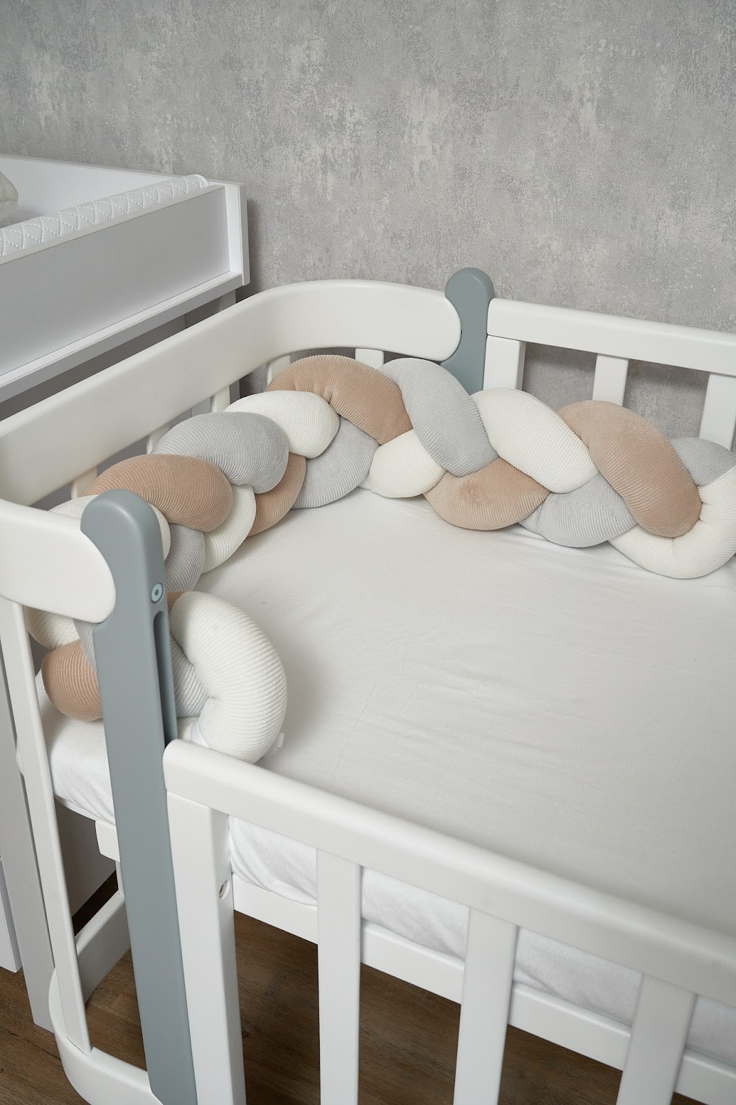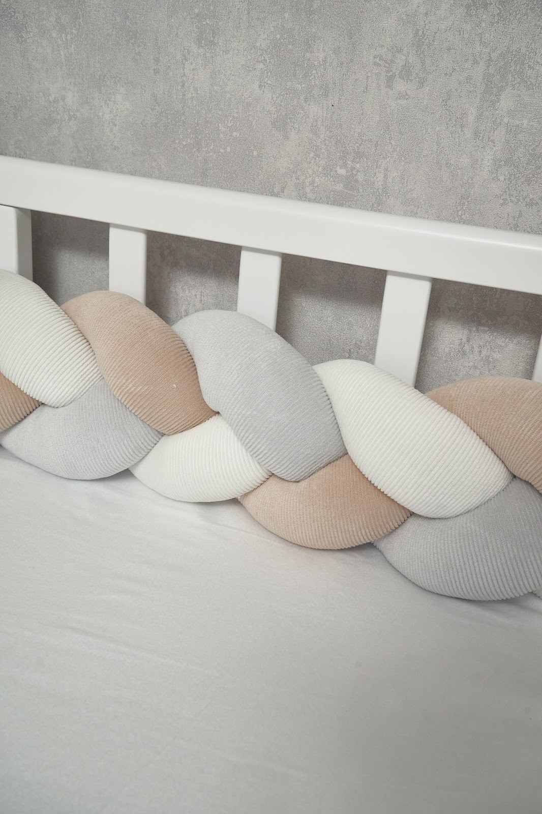 Благодаря стильному дизайну в форме косы бампер гармонично дополнит интерьер детской комнаты, а его нежная текстура подарит малышу уют и комфорт.