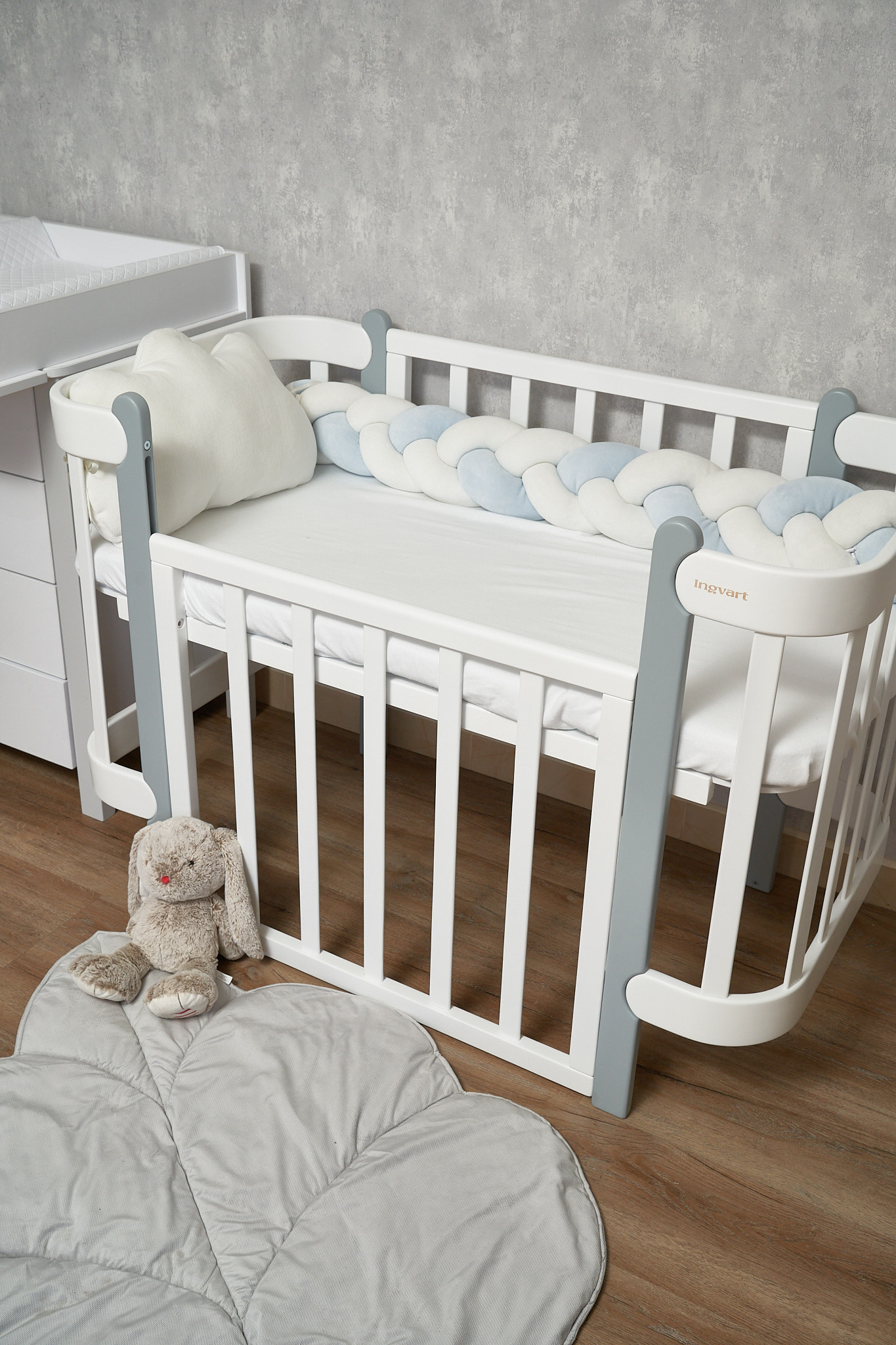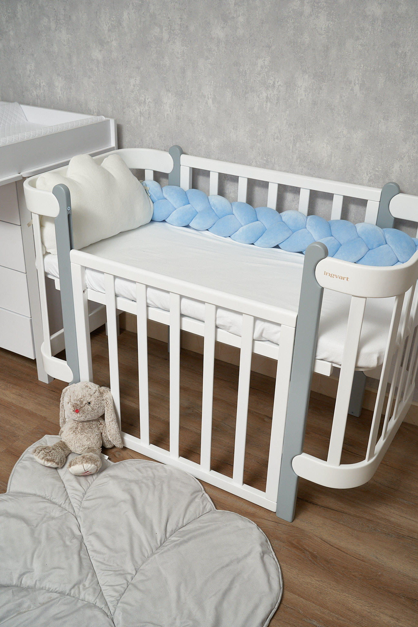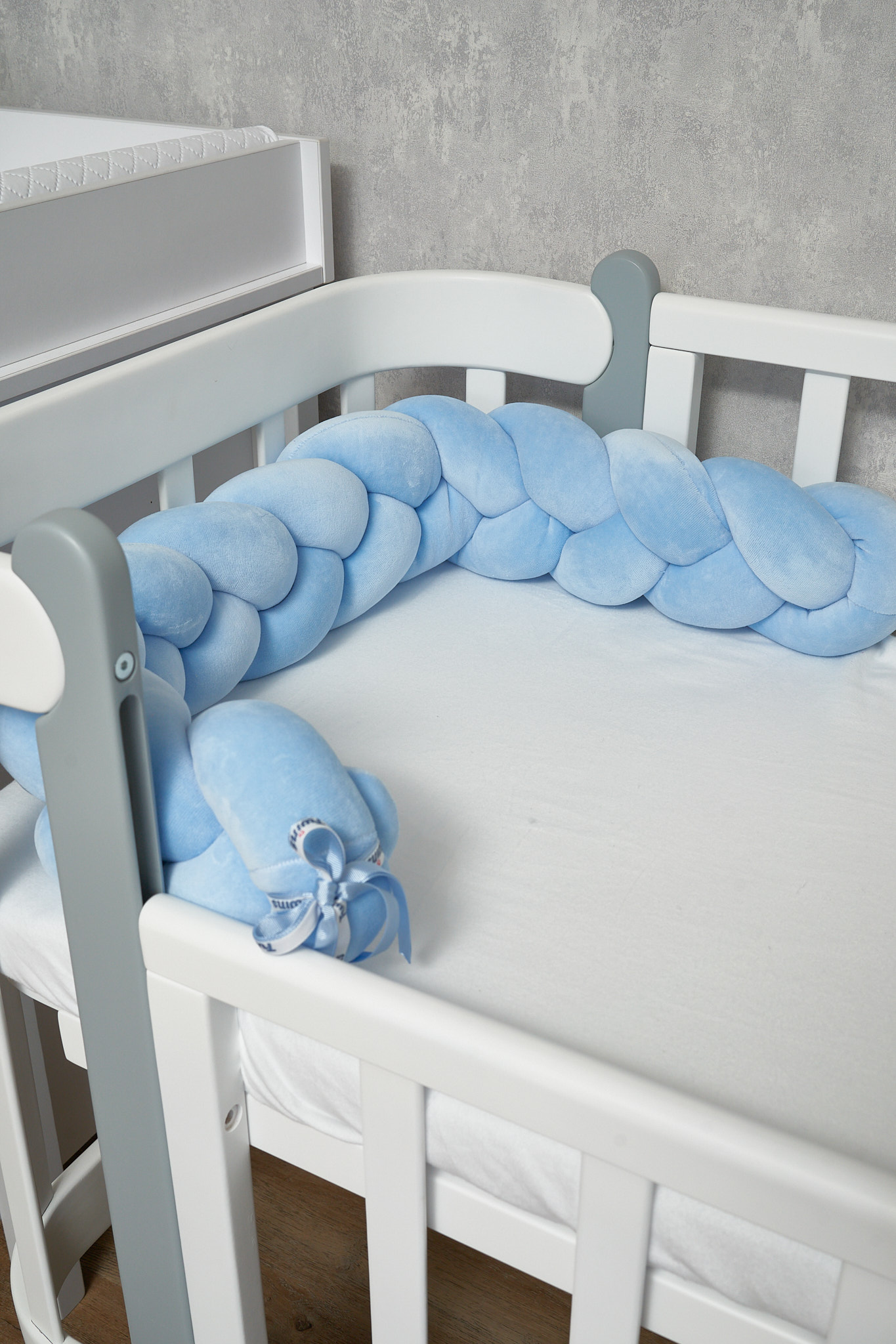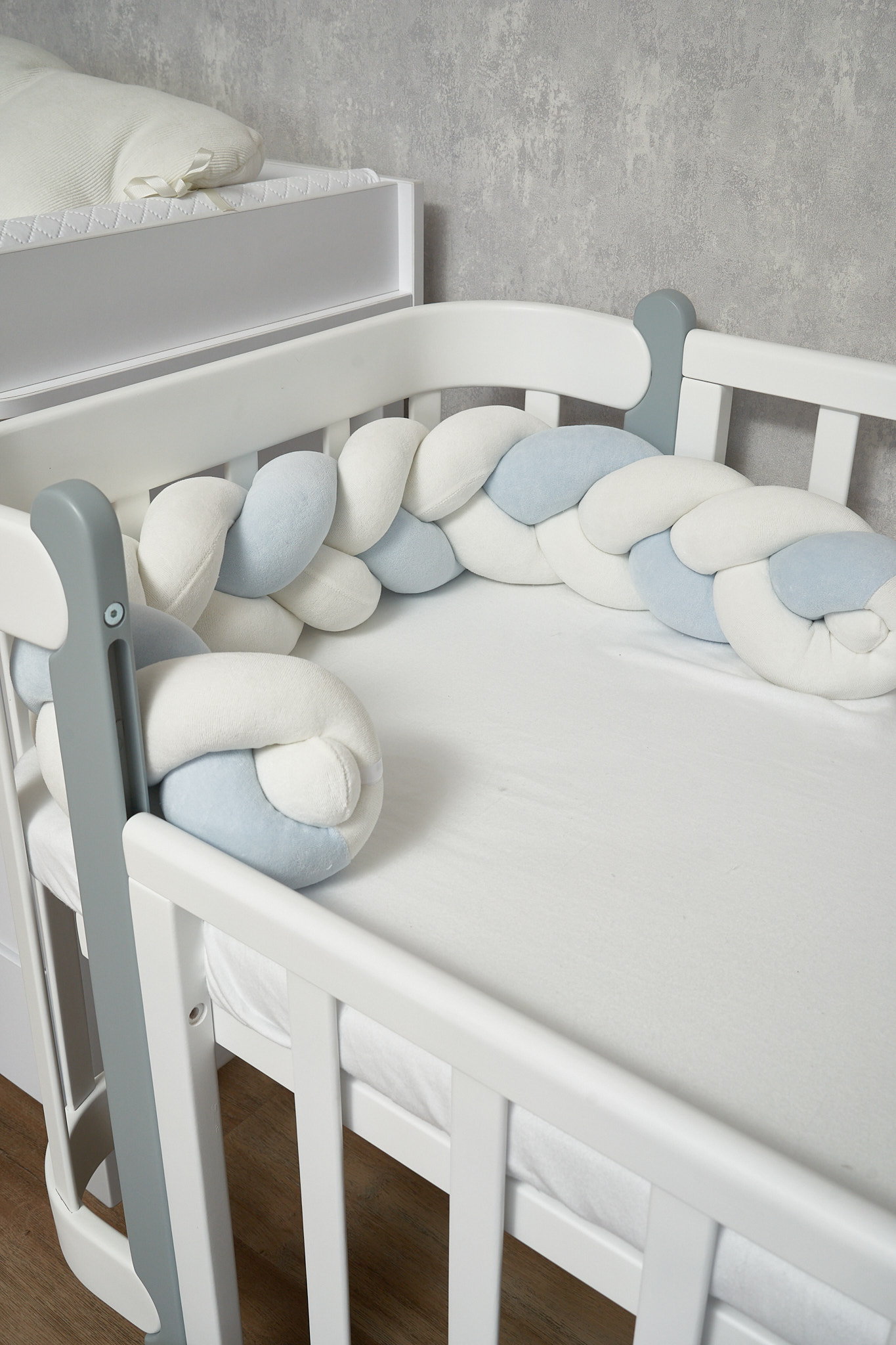 Благодаря стильному дизайну в форме косы бампер гармонично дополнит интерьер детской комнаты, а его нежная текстура подарит малышу уют и комфорт.