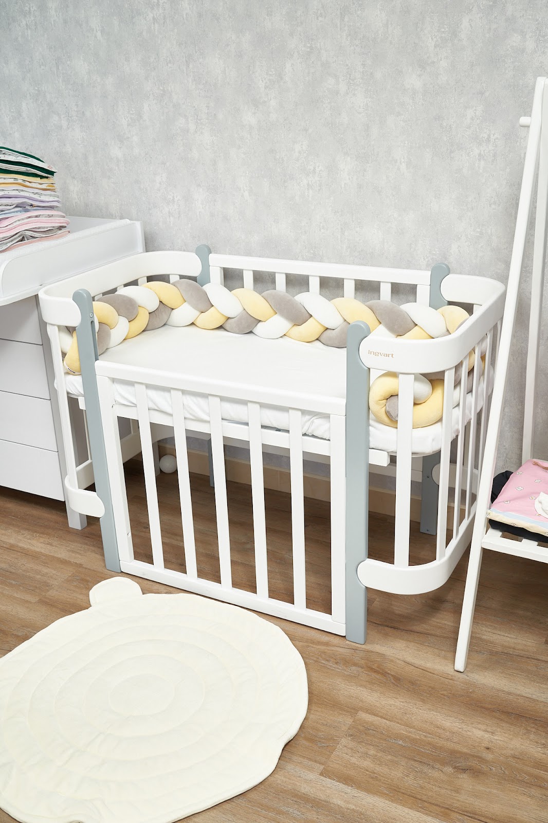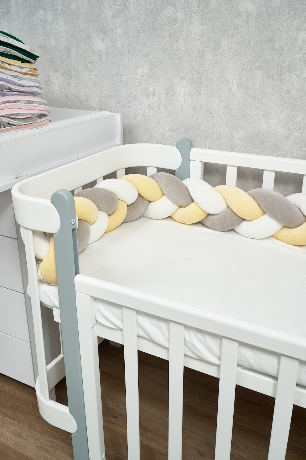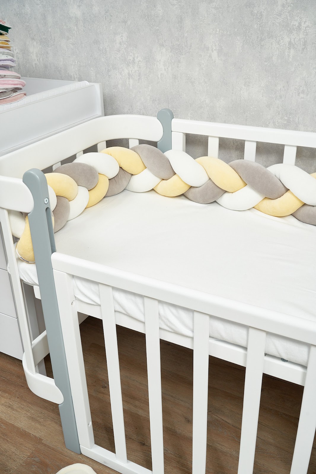 Благодаря стильному дизайну в форме косы бампер гармонично дополнит интерьер детской комнаты, а его нежная текстура подарит малышу уют и комфорт.