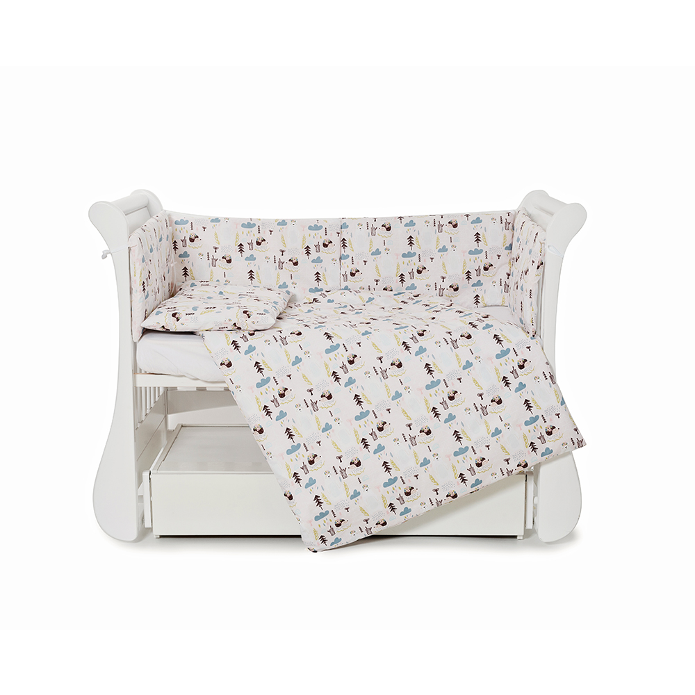 На тканевый материал бампера Twins Comfort line нанесены рисунки различных размеров, рассматривая которые, ребенок быстрее научится различать объекты, воспринимать цвета и детали, концентрировать и переводить взгляд.   Бампер Twins выполнен исключительно из натуральной ткани. Состоит из 6-ти частей для удобного и практичного использования. Крепится к кровати с помощью завязок.   Вместе с бортиками можно также подобрать сменное постельное белье в той же цветовой гамме, так вы получите совершенное и обустроенное спальное место для маленького жителя.