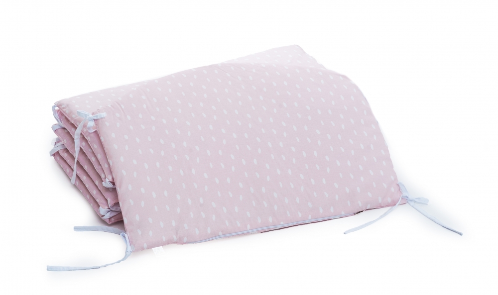 Главное предназначение бампера - защищать малыша от сквозняков и возможных травм. Если детская кроватка стоит недалеко от окна или рядом с холодной стеной, бортик надежно защитит карапуза и создаст для него уютное убежище. Кроме того, любознательный и непоседливый малыш может удариться головой о перила кровати или просунуть отдельные части тела между перилами. Бортики также способствуют более быстрому засыпанию, поскольку малыша ничего не отвлекает извне. Также важной особенностью бампера является его развивающее значение для ребенка. На тканевый материал бампера Twins Dolce нанесены рисунки различных размеров, рассматривая которые, ребенок быстрее научится различать объекты и воспринимать цвета и детали, концентрировать и переводить взгляд.   Бампер Twins Dolce выполнен исключительно из натуральной ткани. Состоит из 6-ти частей для удобного и практичного использования. Крепится к кровати с помощью завязок.   Вместе с бортиками можно также подобрать сменное постельное белье в той же цветовой гамме, так вы получите совершенное и обустроенное спальное место для маленького жителя.   Наполнитель: гипоаллергенный Молния: есть Уход: можно стирать чехлы при t 40-60 Размеры ШхВ: 60х34 см - 5 шт, 60х40 см - 1 шт Материал: миткаль (хлопок 100%)
