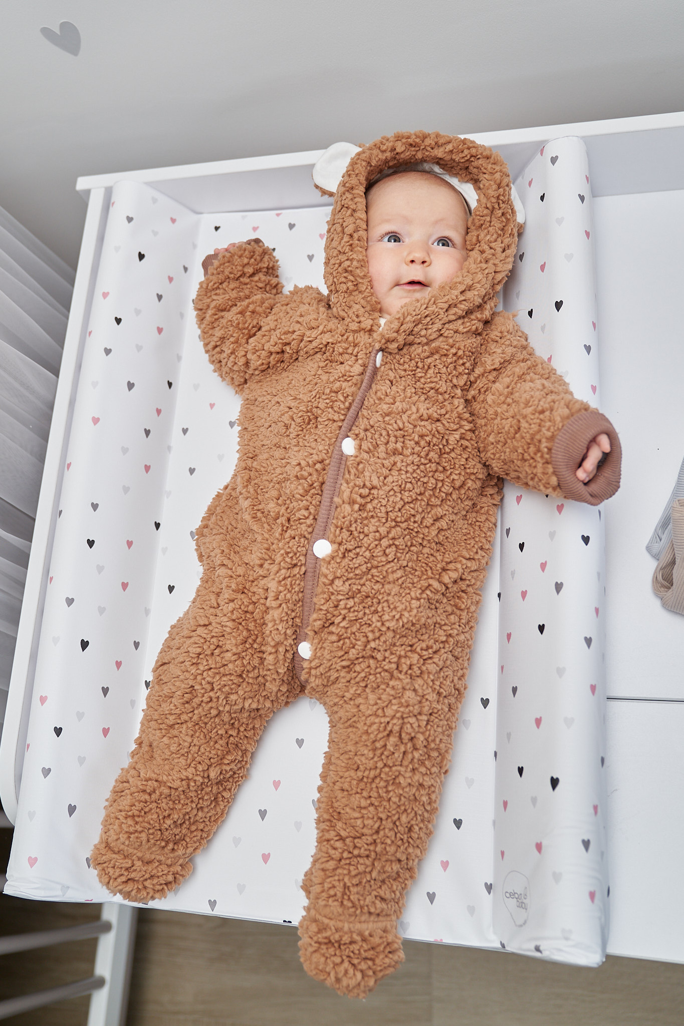 Человечек Twins Teddy изготовлен из мягкого и теплого искусственного меха, что дарит максимальный комфорт и уют малышу в холодное время года.