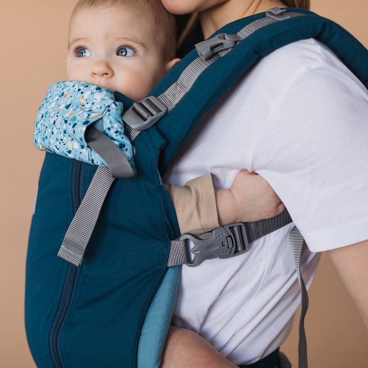 Ребенок будет чувствовать себя комфортно, рюкзак обеспечивает физиологическое положение ребенка - М-позицию, также поддерживает позвоночник ребенка по всей длине. В спинку вшиты подголовник и капюшон, чтобы когда малыш заснет, и ему, и родителям было комфортно. Подголовник с двумя положениями и регулируемая соединительная стропа, что снимается.