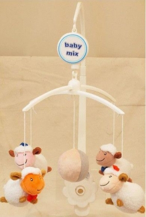 Цветные мягкие игрушки, которые можно использовать как отдельные игрушки, скрашивают малышу время, проведенное в кроватке, а успокаивающая мелодия, звучащая из механизма, помогает ребенку быстрее уснуть.