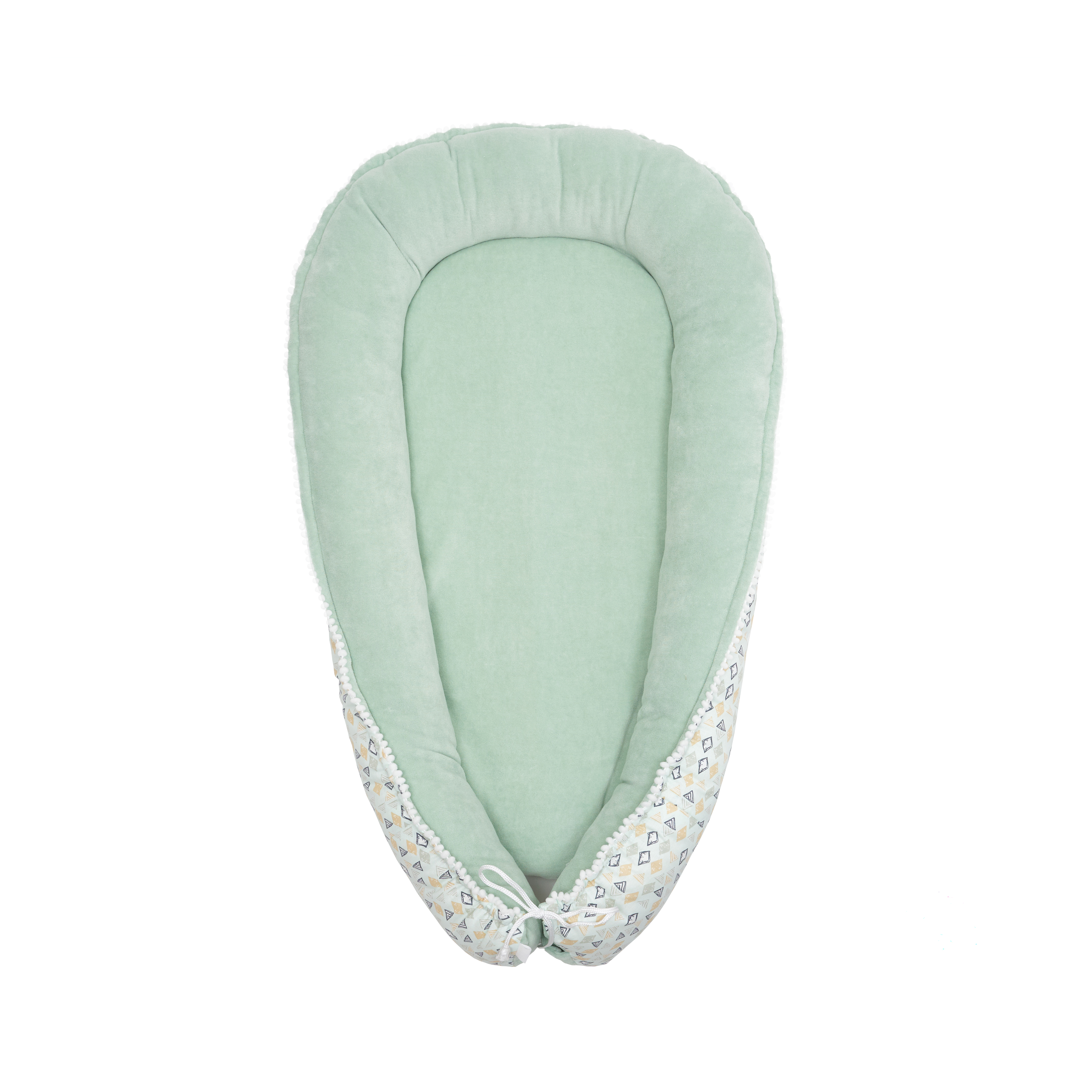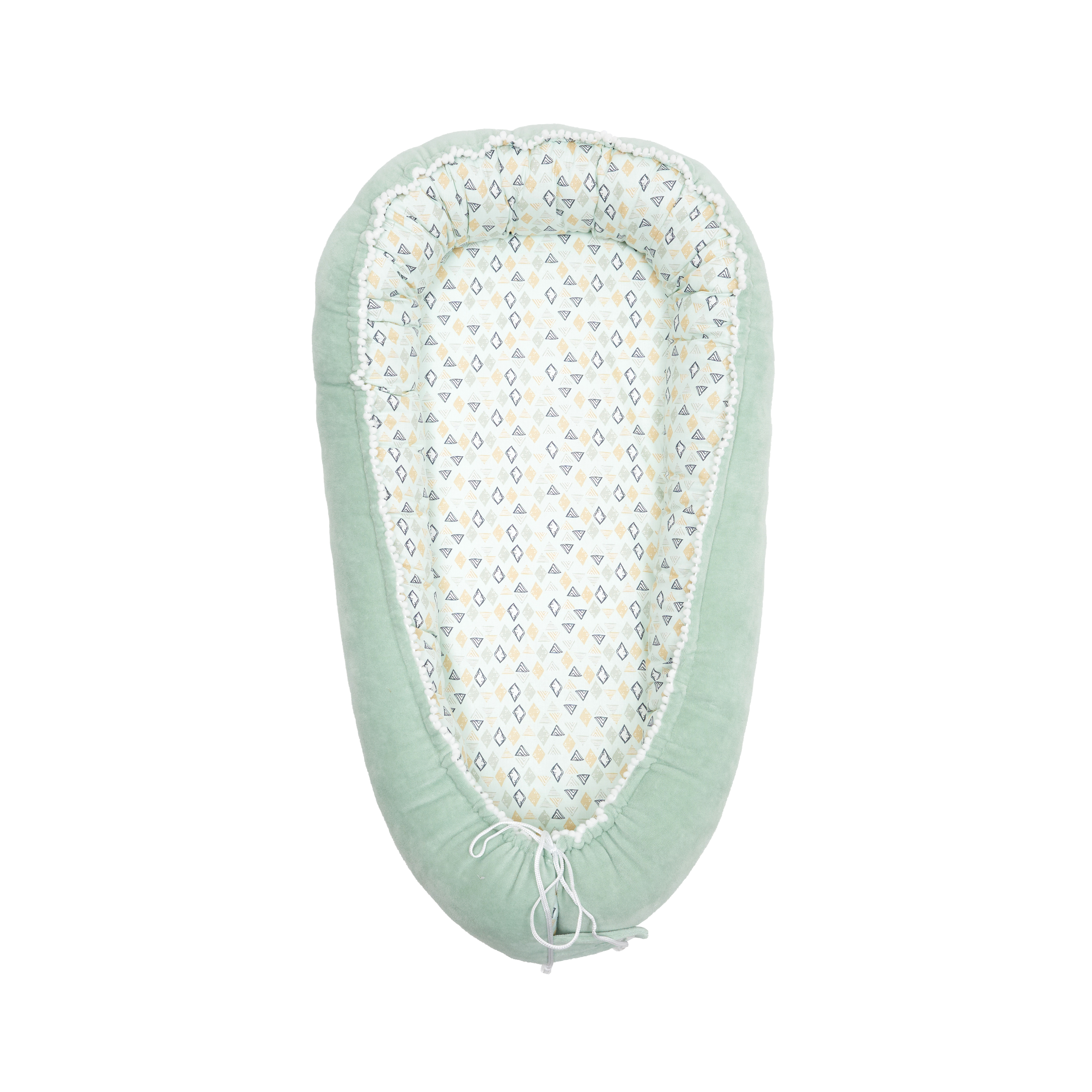 Изготовлен кокон для новорожденных из органического поплина, сертифицированного OEKO-TEX, и нежного хлопкового велюра.
