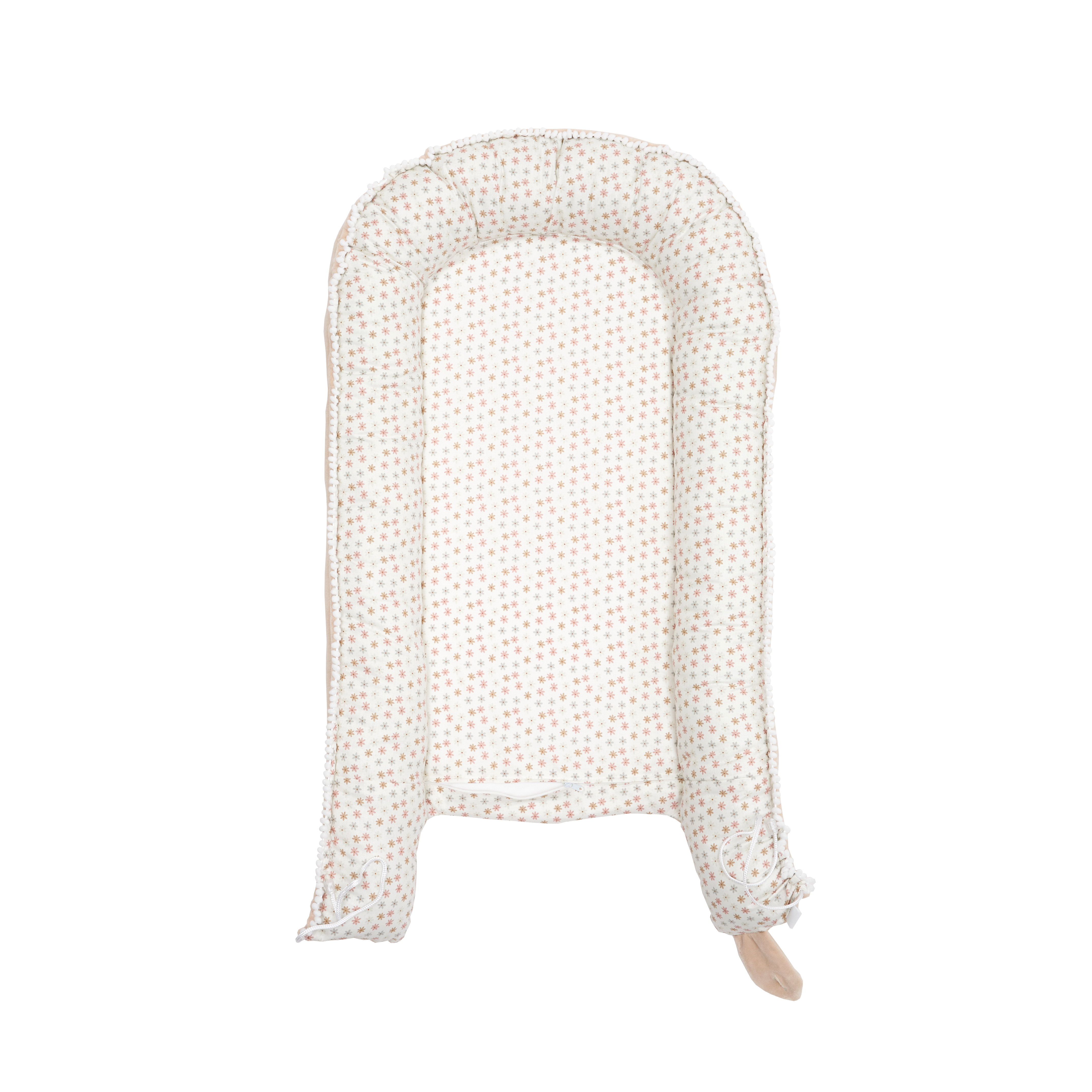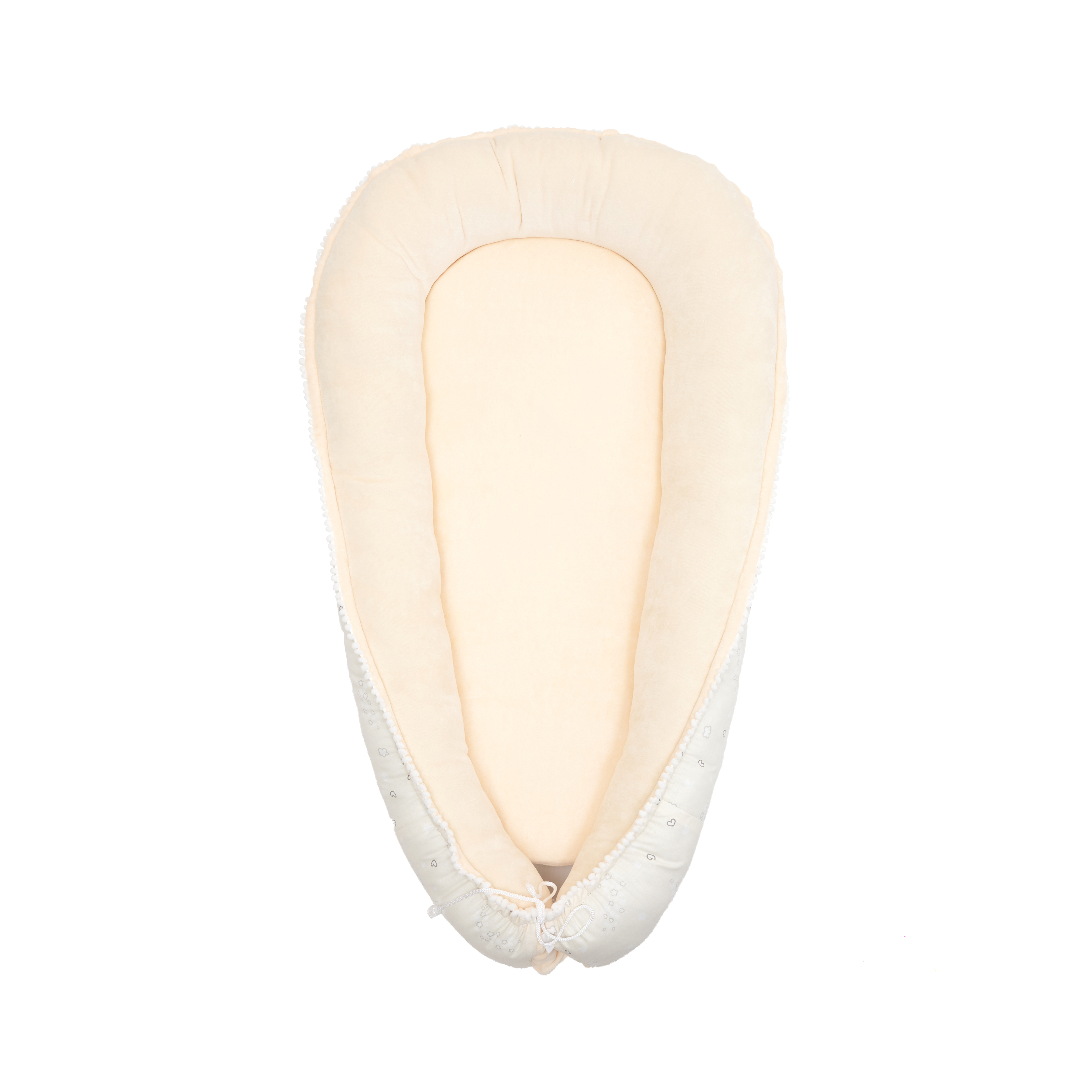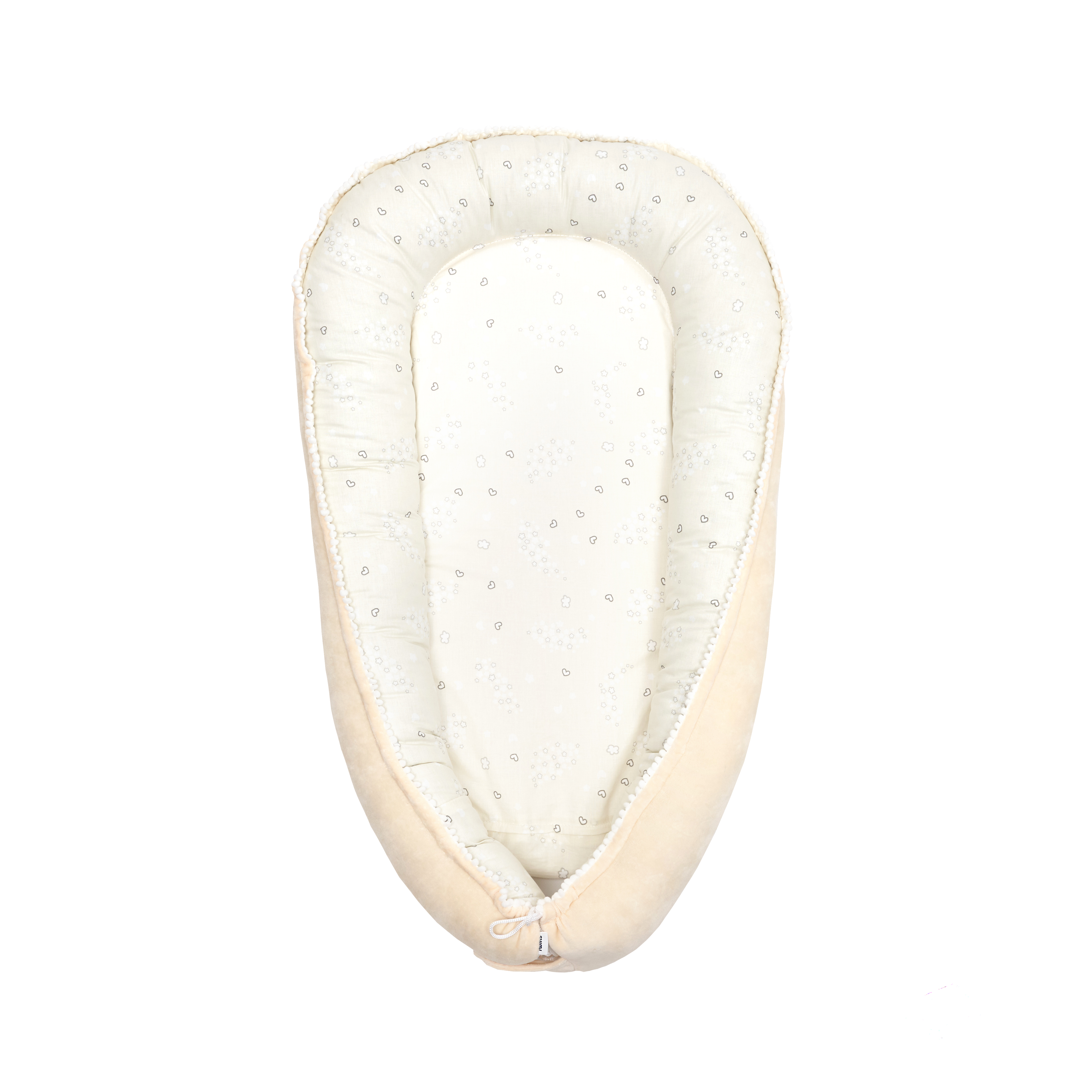 Изготовлен кокон для новорожденных из органического поплина, сертифицированного OEKO-TEX, и нежного хлопкового велюра.